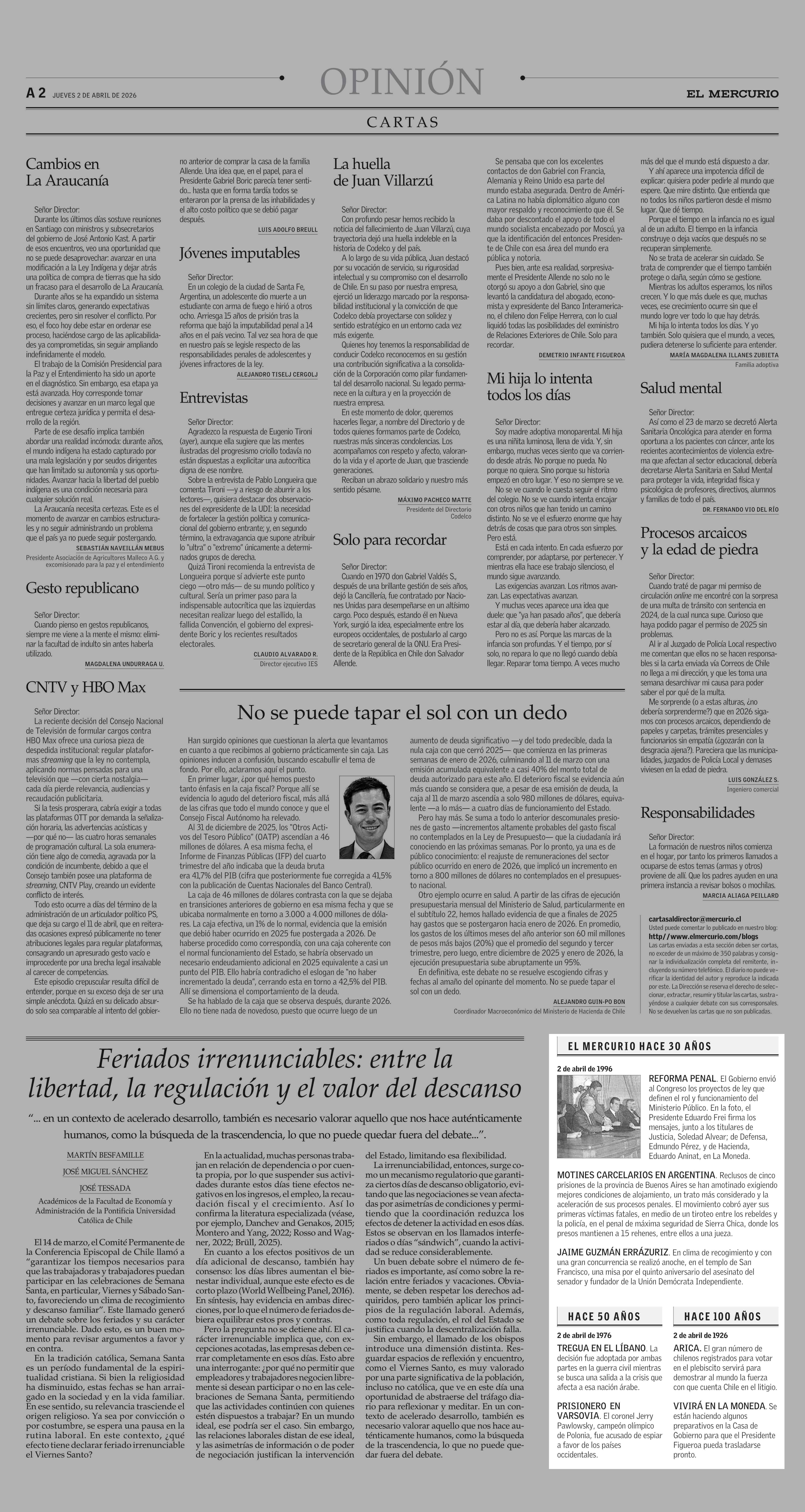 EL MERCURIO HACE 30 AÑOS 02-04-2026 El Mercurio |