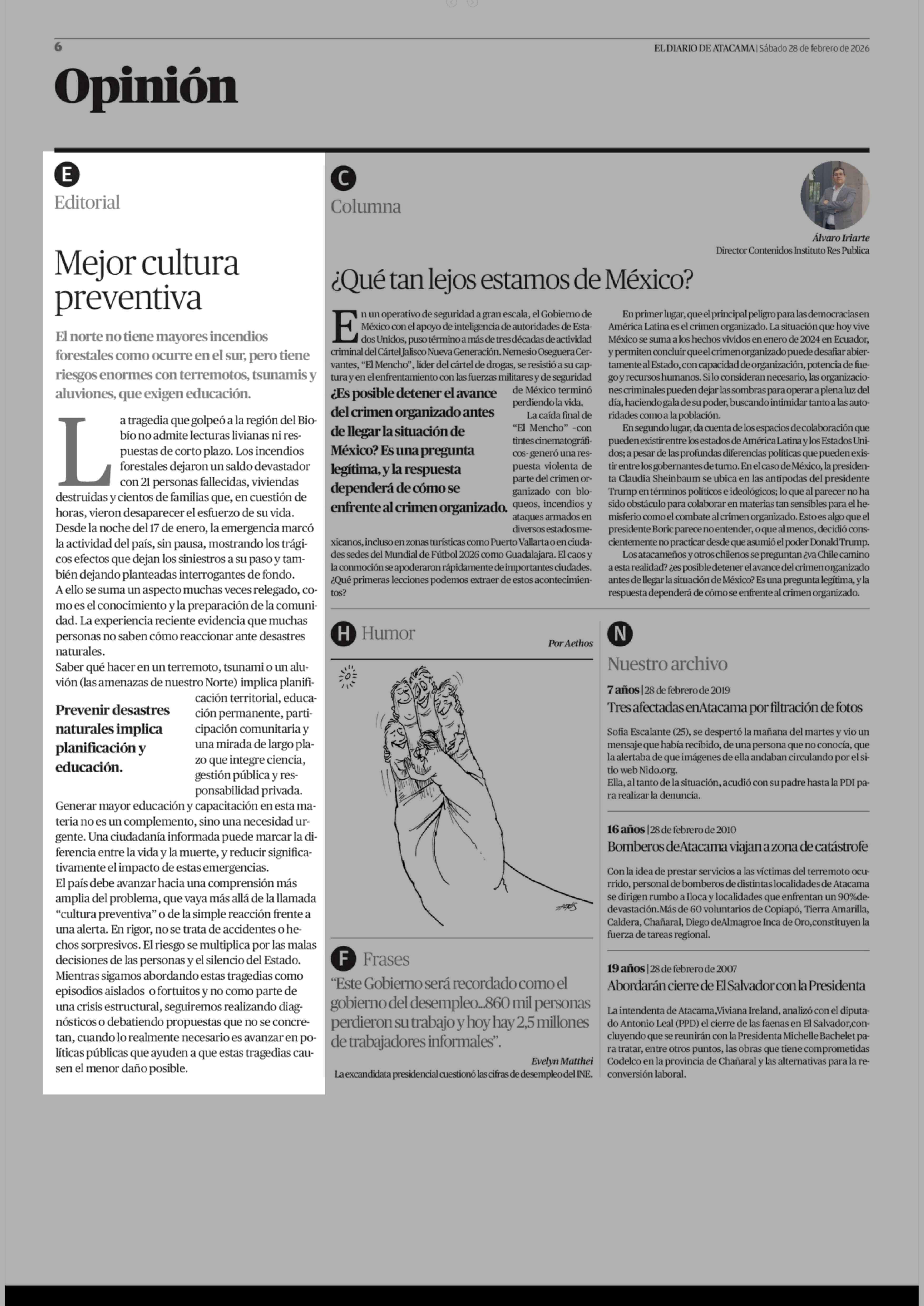 Editorial: Mejor cultura preventiva 28-02-2026 El Diario de Atacama |