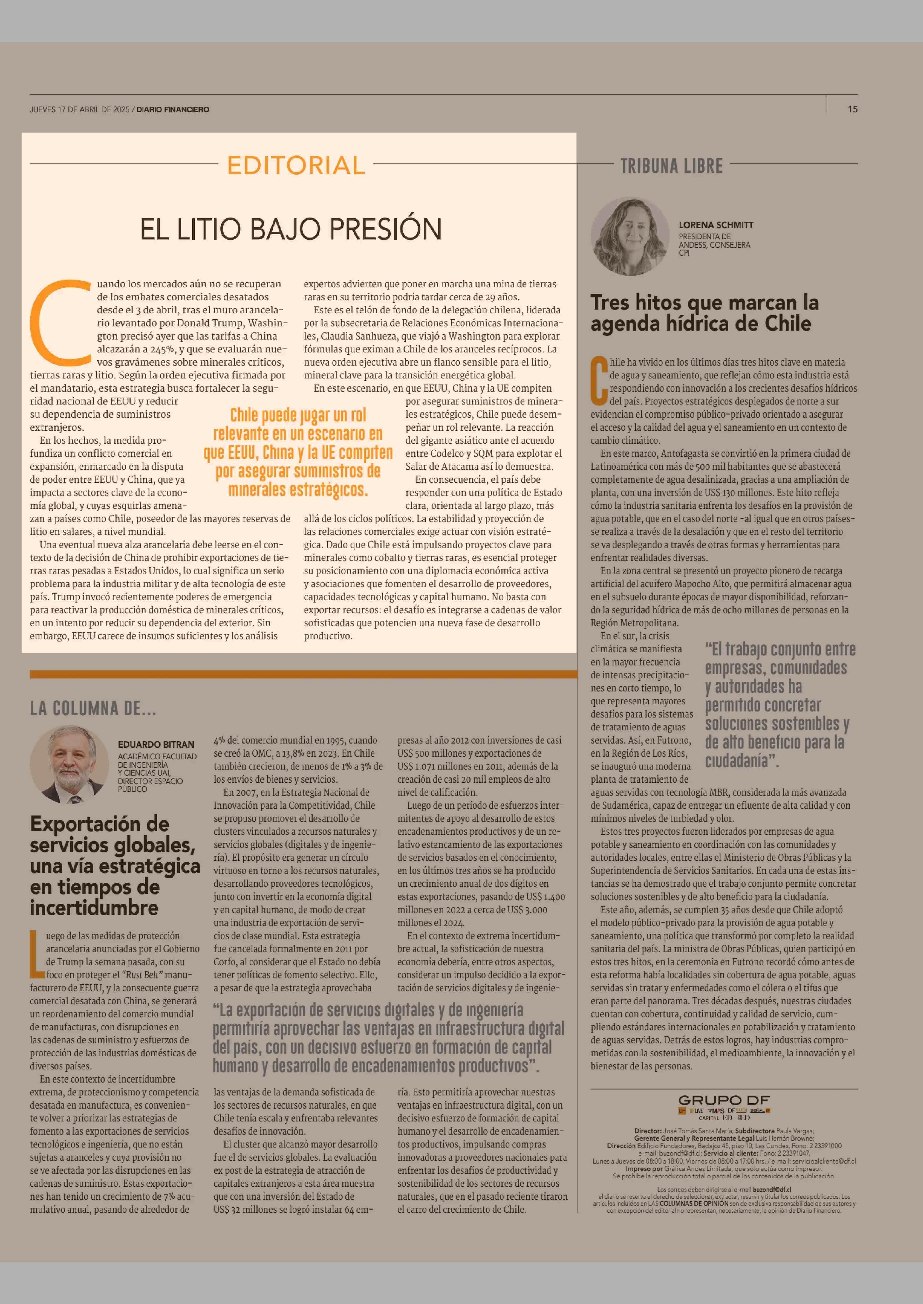 EDITORIAL: EL LITIO BAJO PRESIÓN 17-04-2025 Diario Financiero |