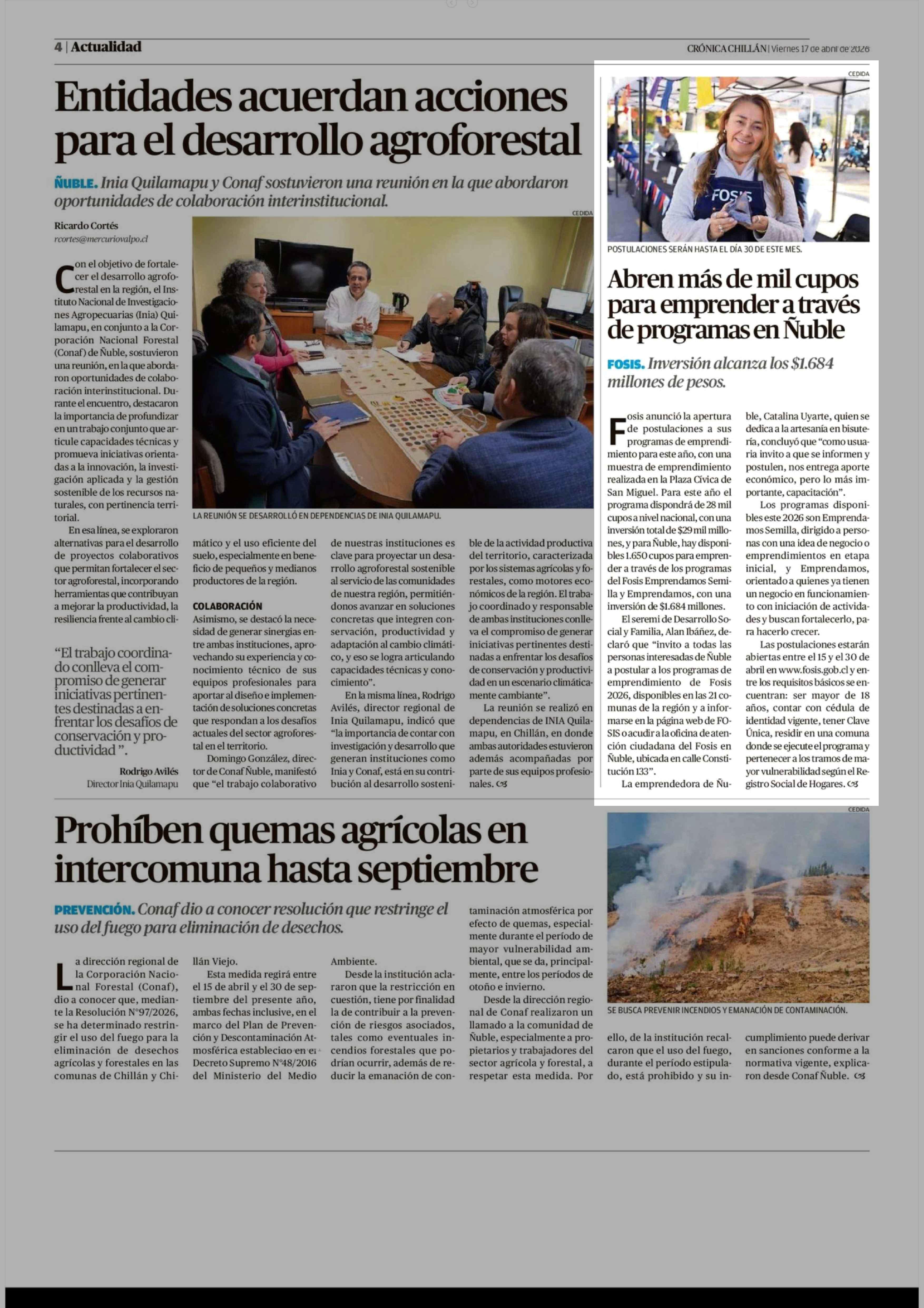 | Fecha: | 17-04-2026 | Sector: | Noticia general | Región: | Región del Ñuble |