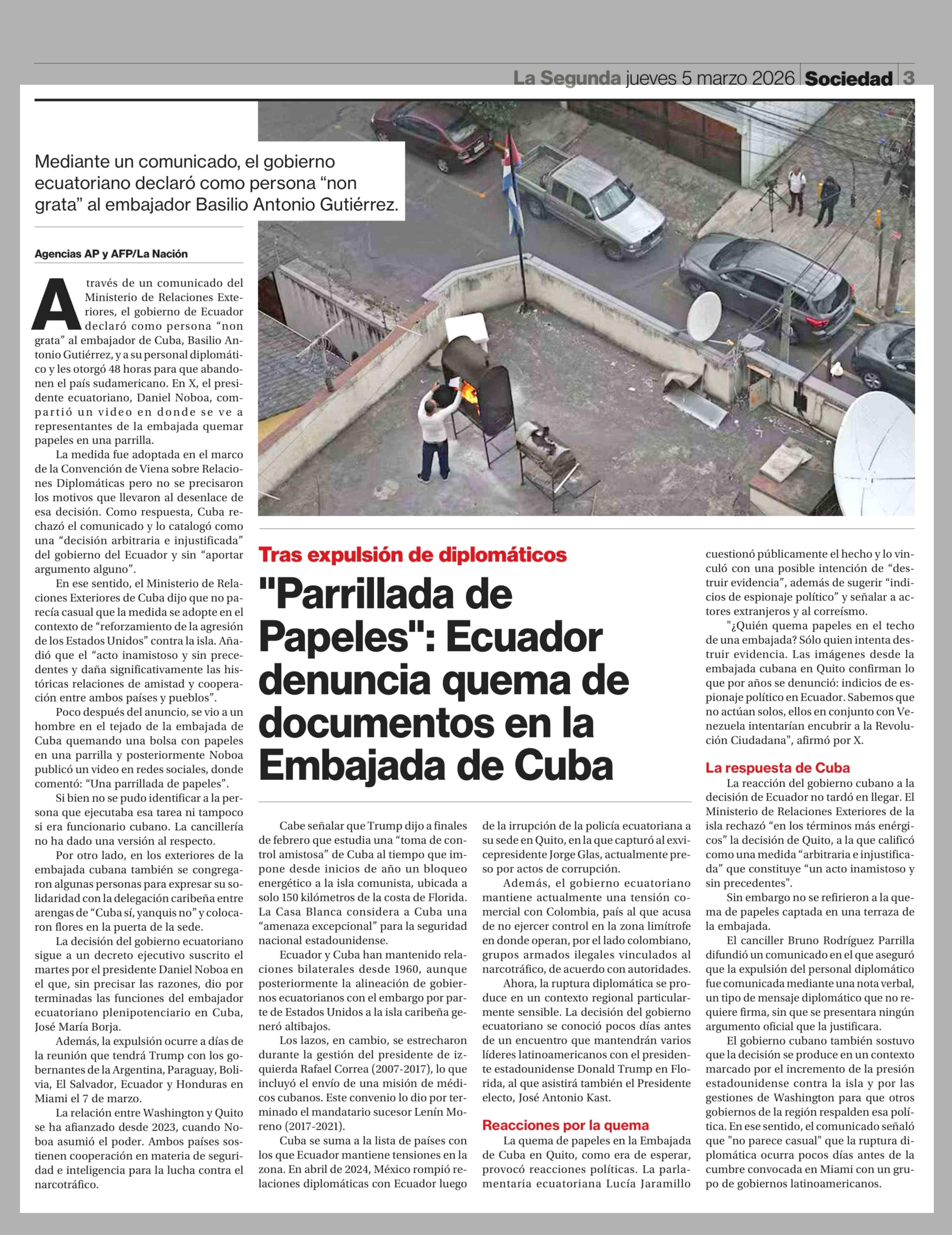 Título: "Parrillada de Papeles": Ecuador denuncia quema de documentos en la Embajada de Cuba