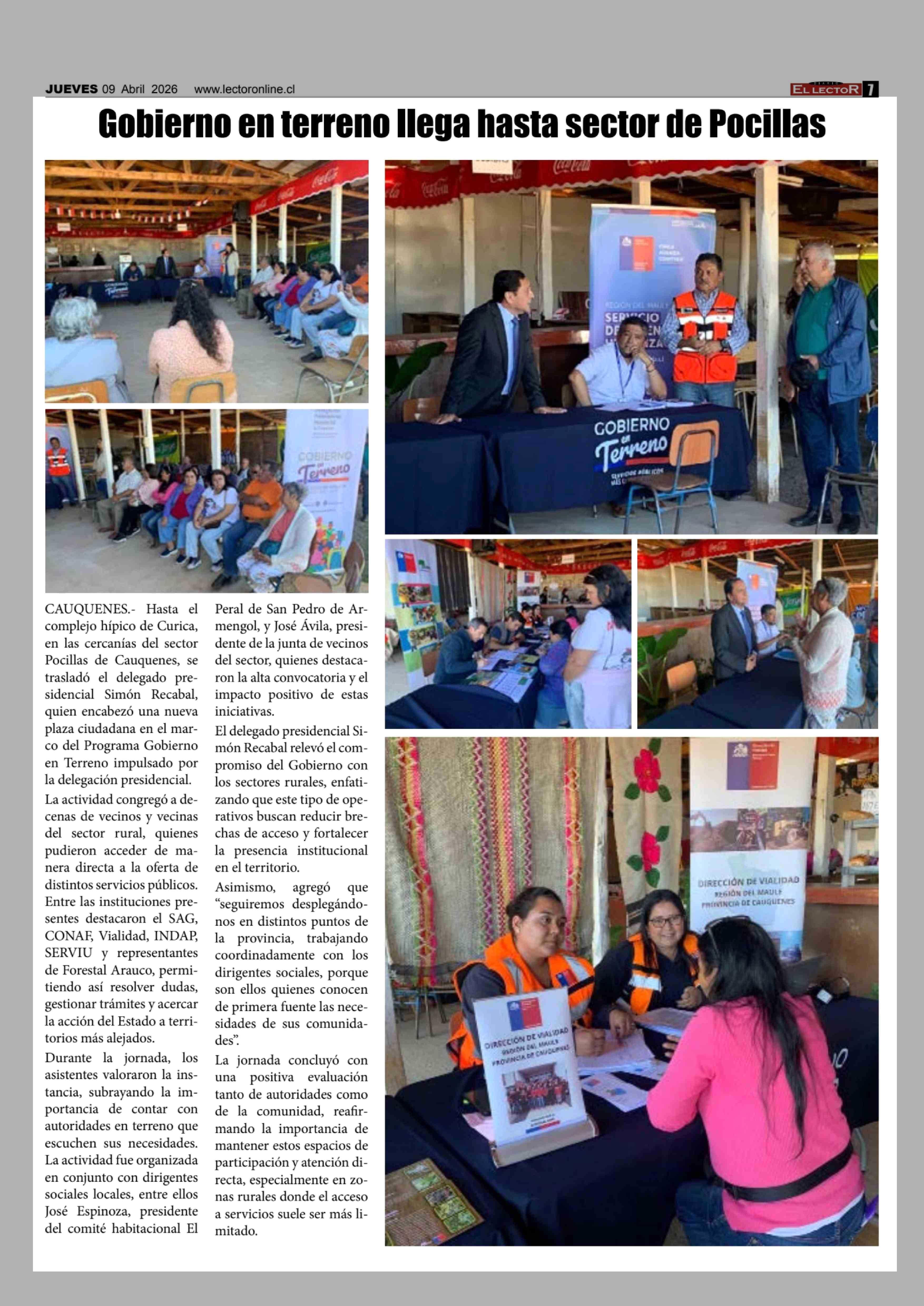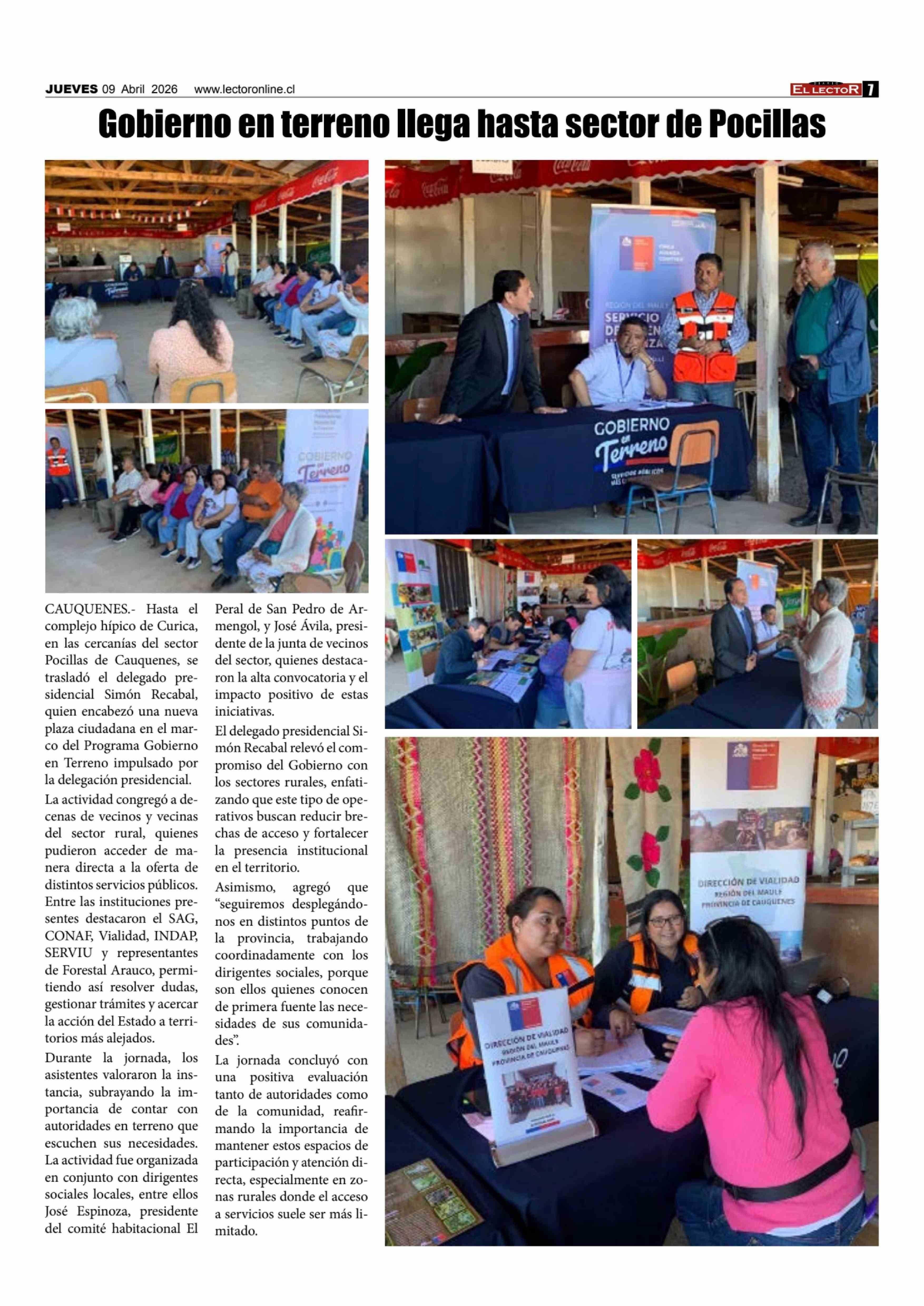 Gobierno en terreno llega hasta sector de Pocillas 09-04-2026 El Lector |