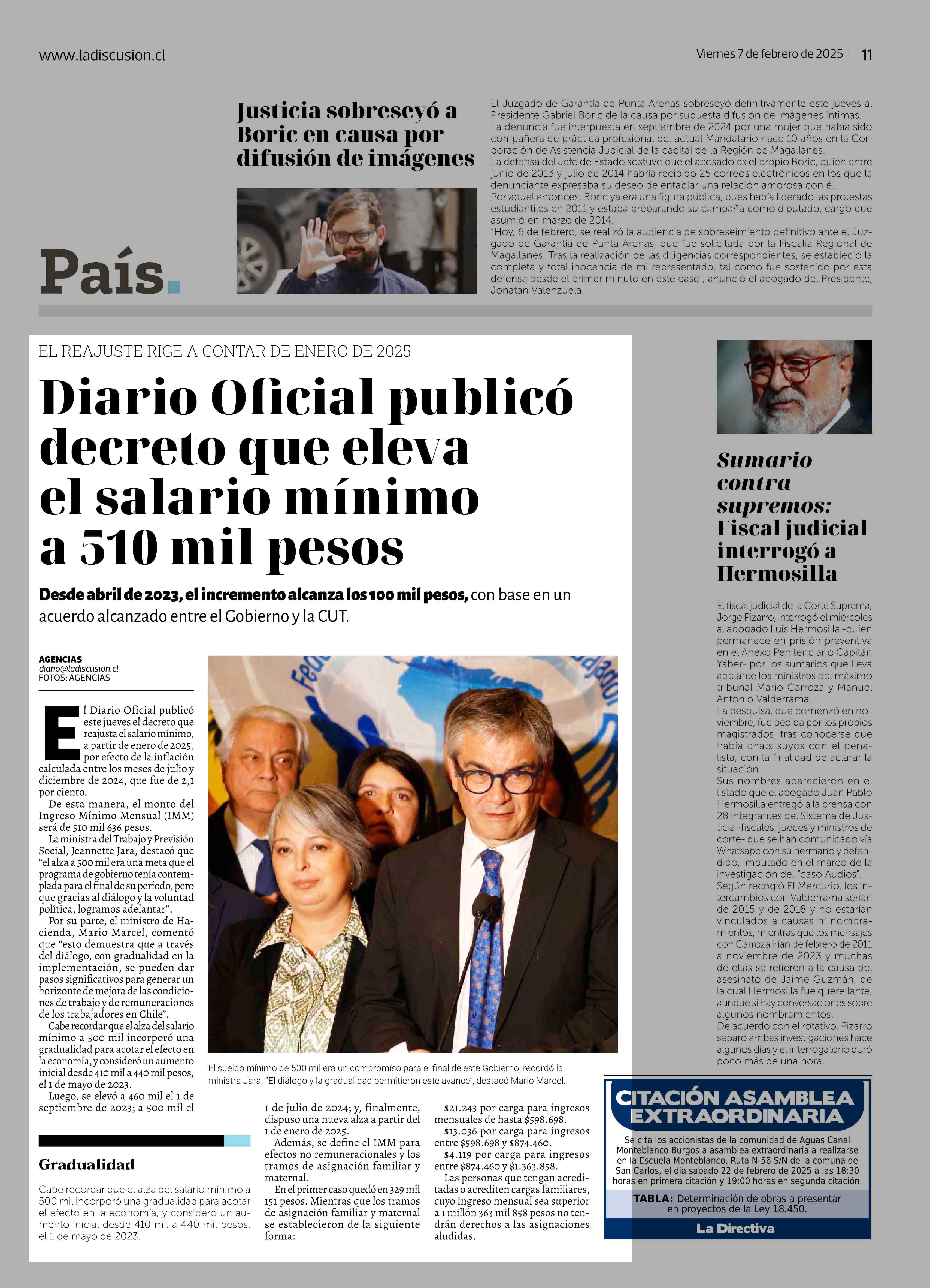 Diario Oficial publicó decreto que eleva el salario mínimo a 510 mil pesos 07-02-2025 La Discusión |