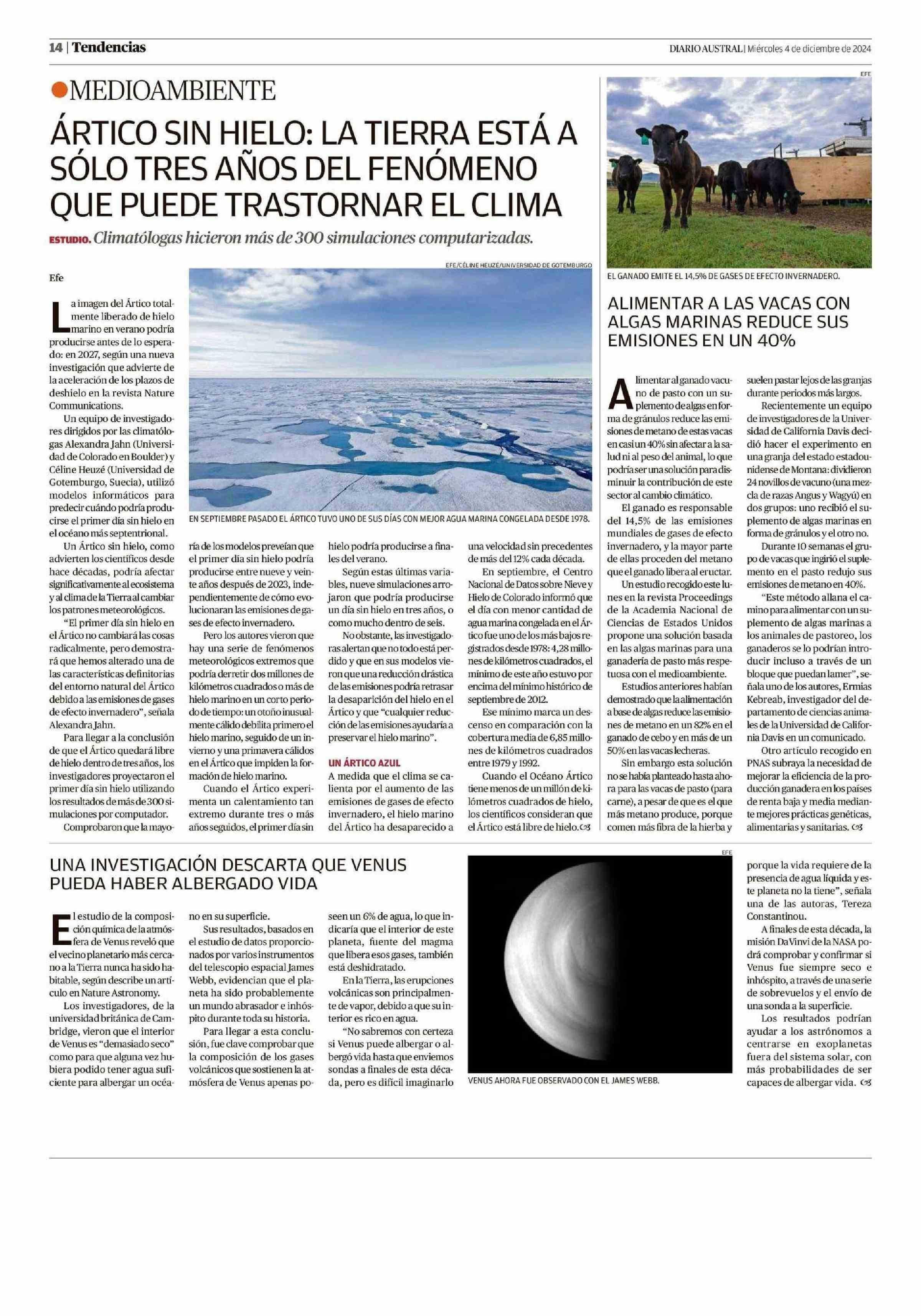 ALIMENTAR A LAS VACAS CON ALGAS MARINAS REDUCE SUS EMISIONES EN UN 40% 04-12-2024 Diario Austral Región de Los Ríos |