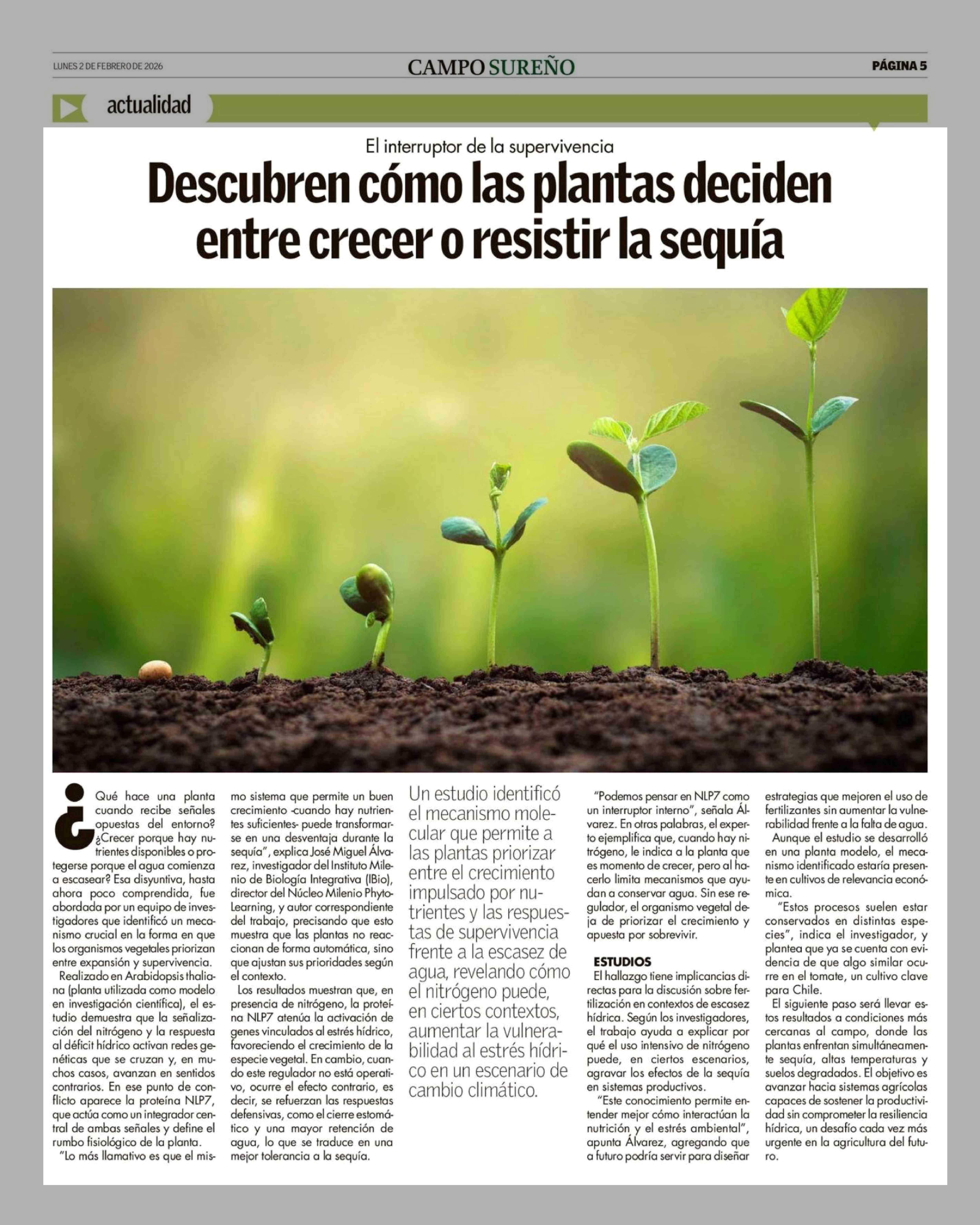 Descubren cómo las plantas deciden entre crecer o resistir la sequía 02-02-2026 Campo Sureño - Regiones IX, X y XIV |
