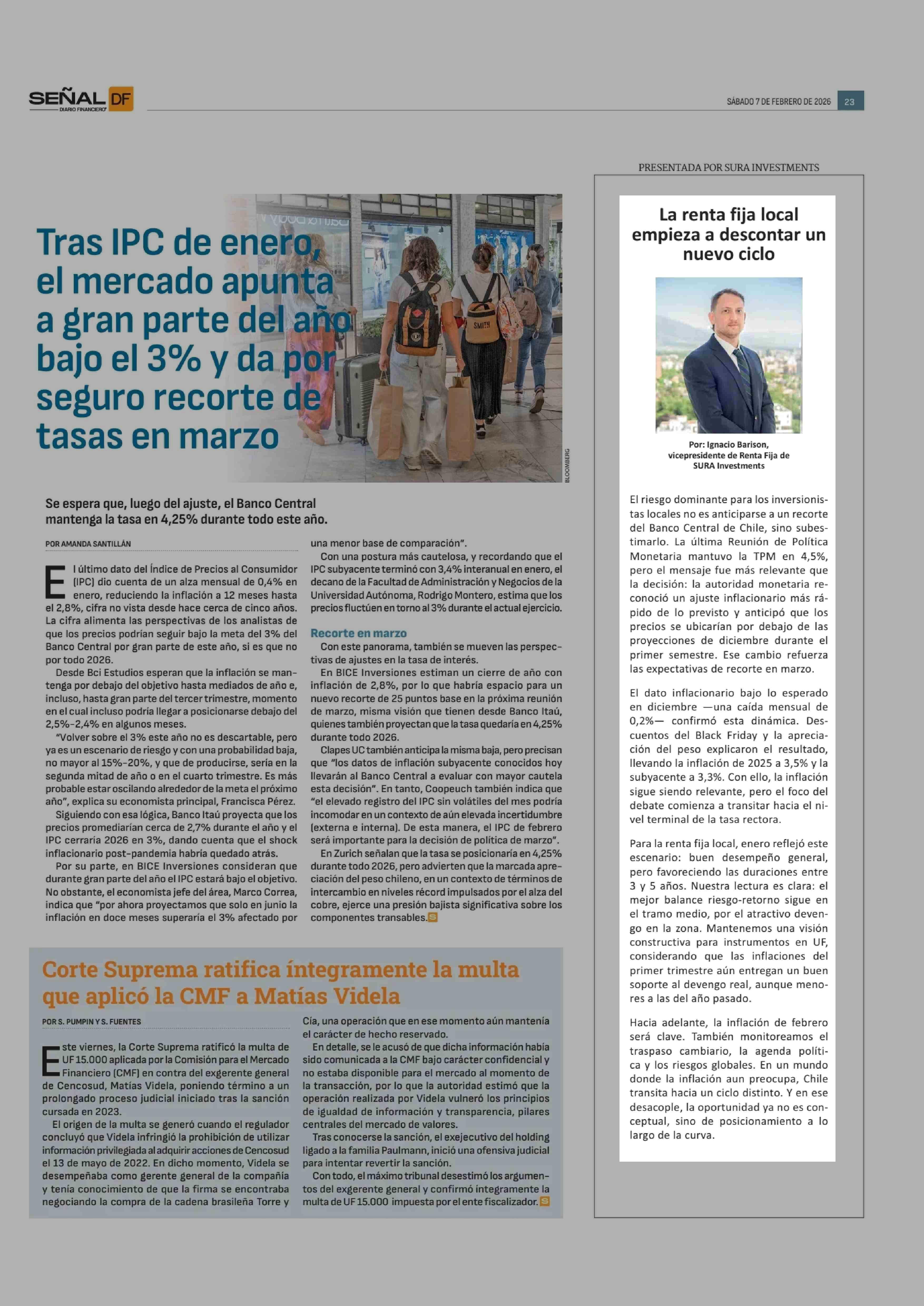 Fuente: Diario Financiero (Diario Financiero - Señal DF Sabado) Página(s): 23