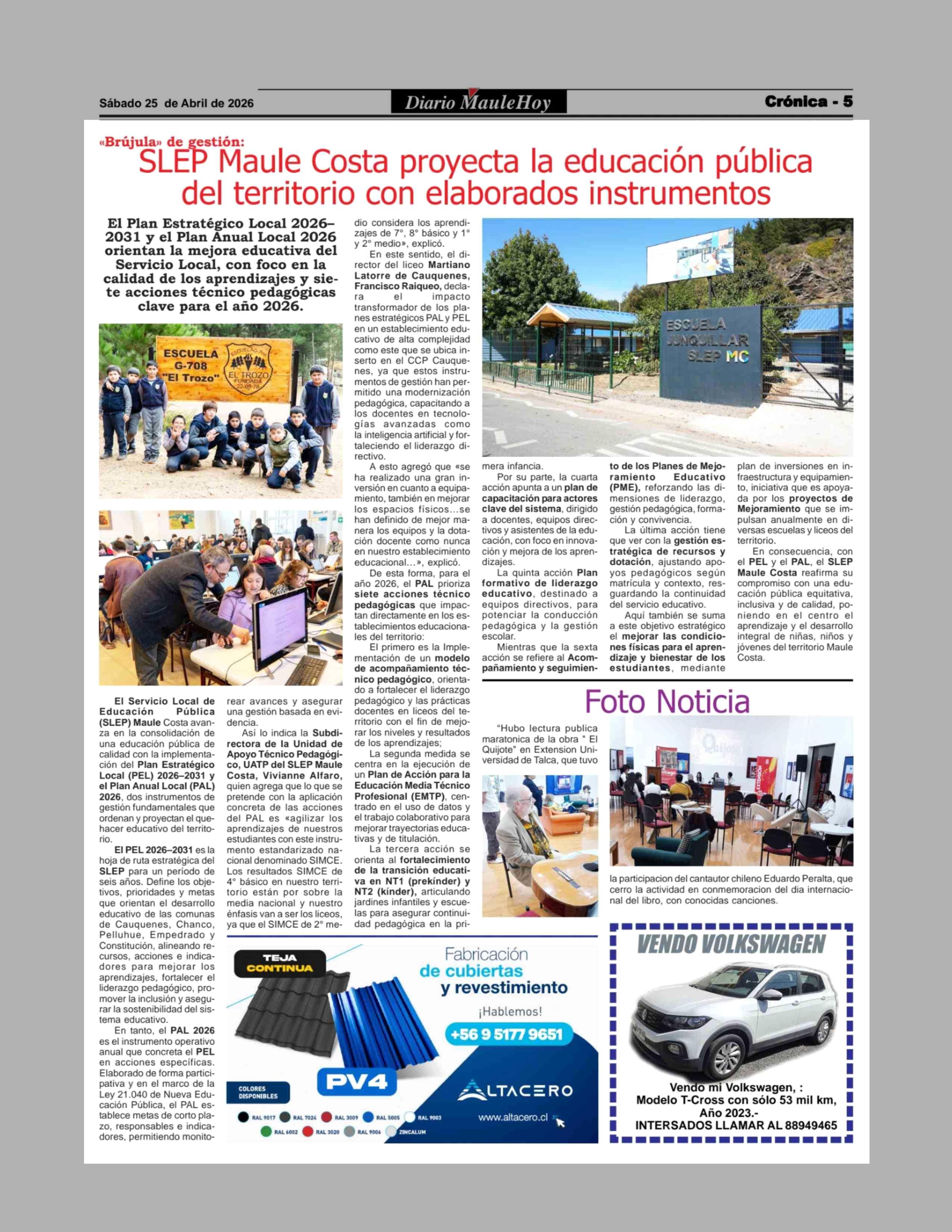 SLEP Maule Costa proyecta la educación pública del territorio con elaborados instrumentos 25-04-2026 Maule Hoy |