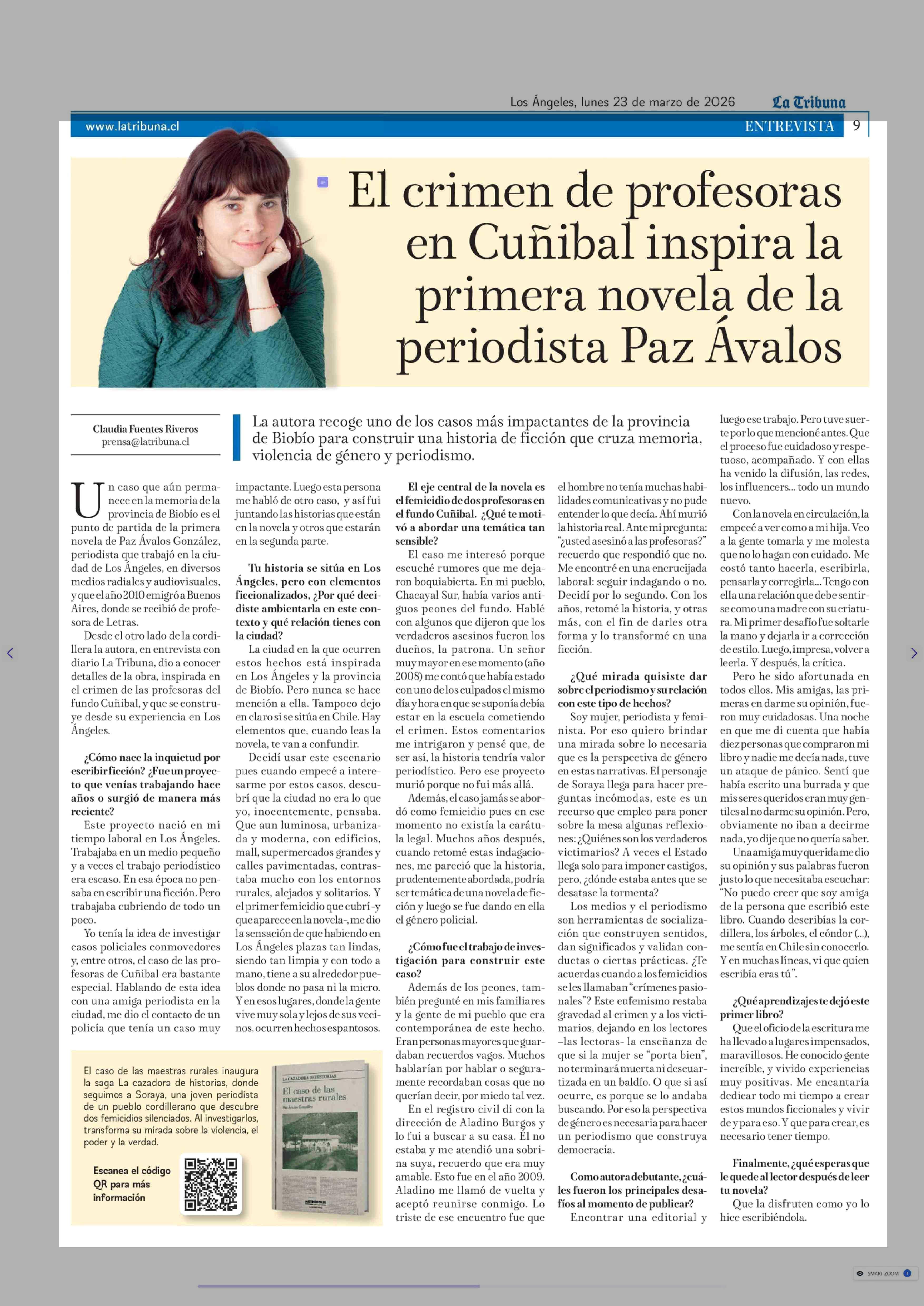 El crimen de profesoras en Cuñibal inspira la primera novela de la periodista Paz Ávalos 23-03-2026 La Tribuna |