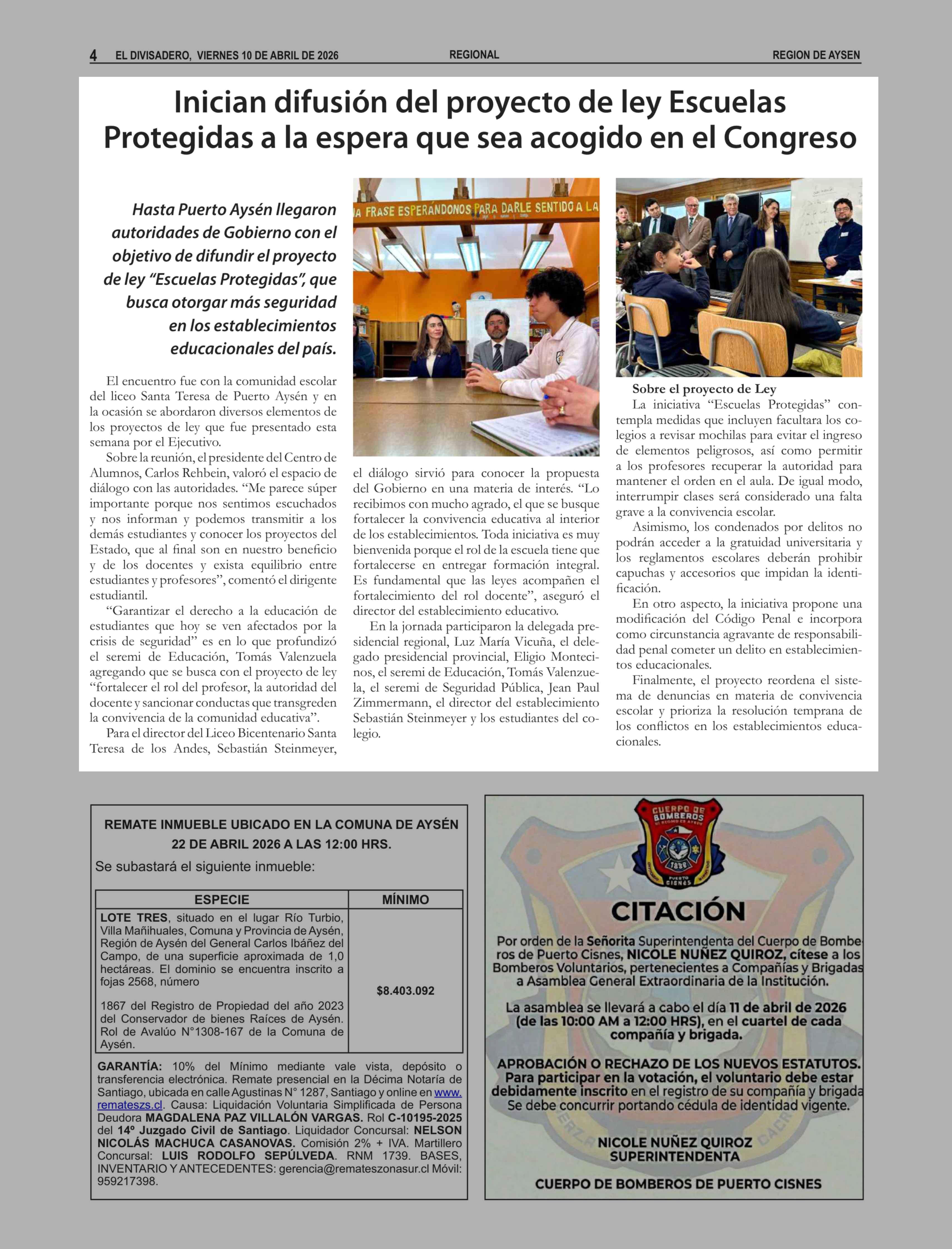Fecha: 10-04-2026 Sector: Noticia general Región: Región Aysén del General Carlos Ibáñez del Campo