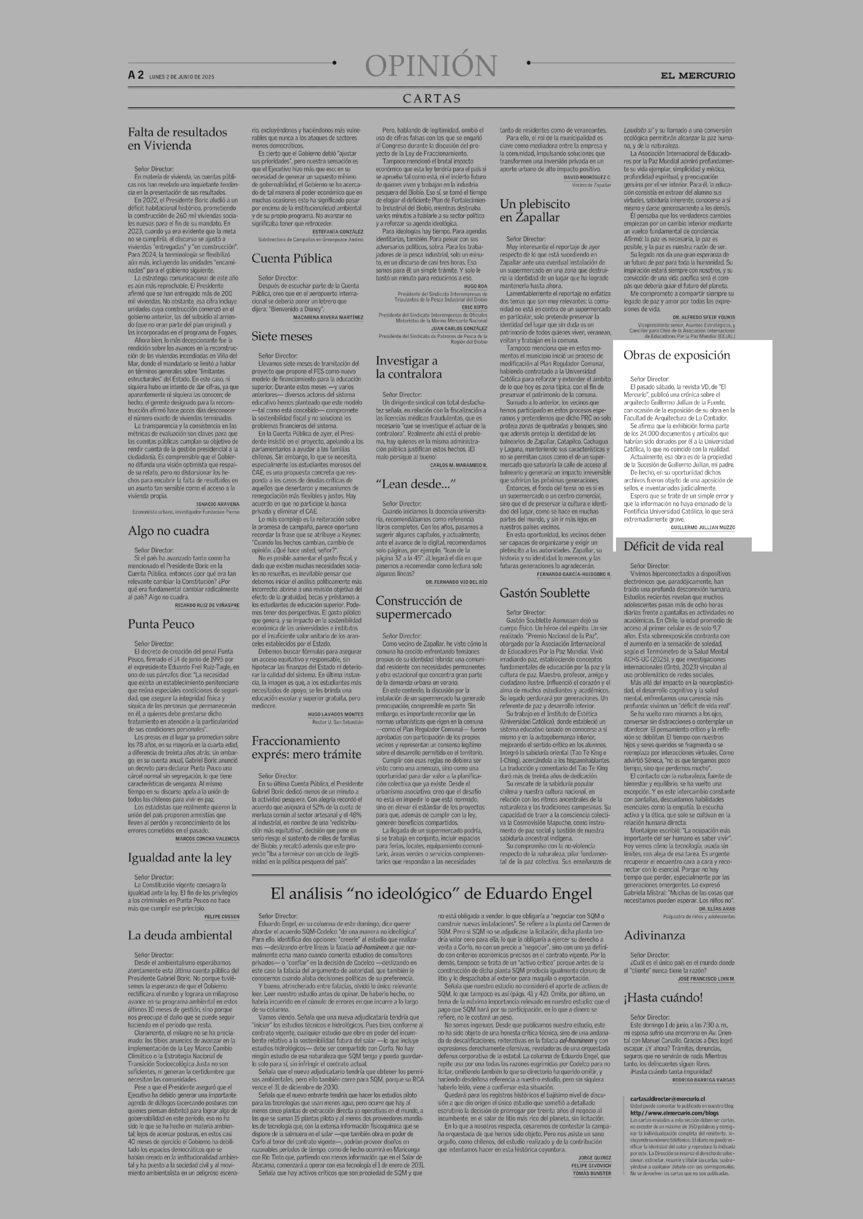 CARTAS: Obras de exposición 02-06-2025 El Mercurio |