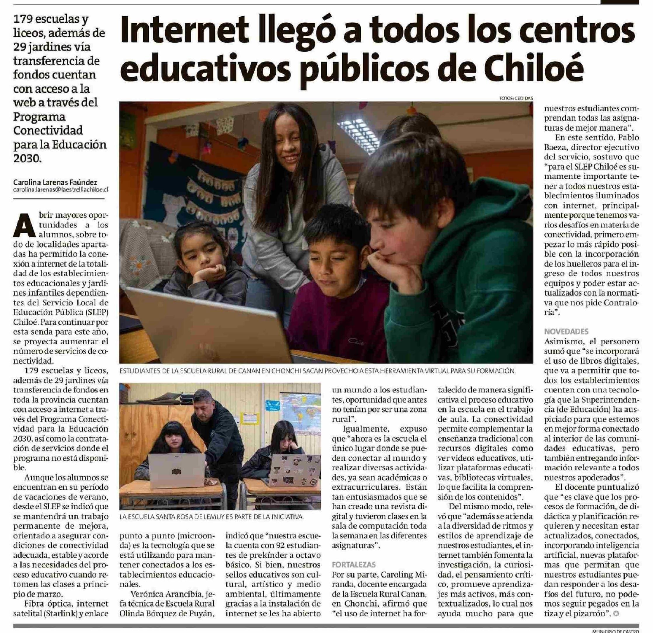 Internet llego a todos los centros educativos públicos de Chiloé 18-01-2026 La Estrella de Chiloé |