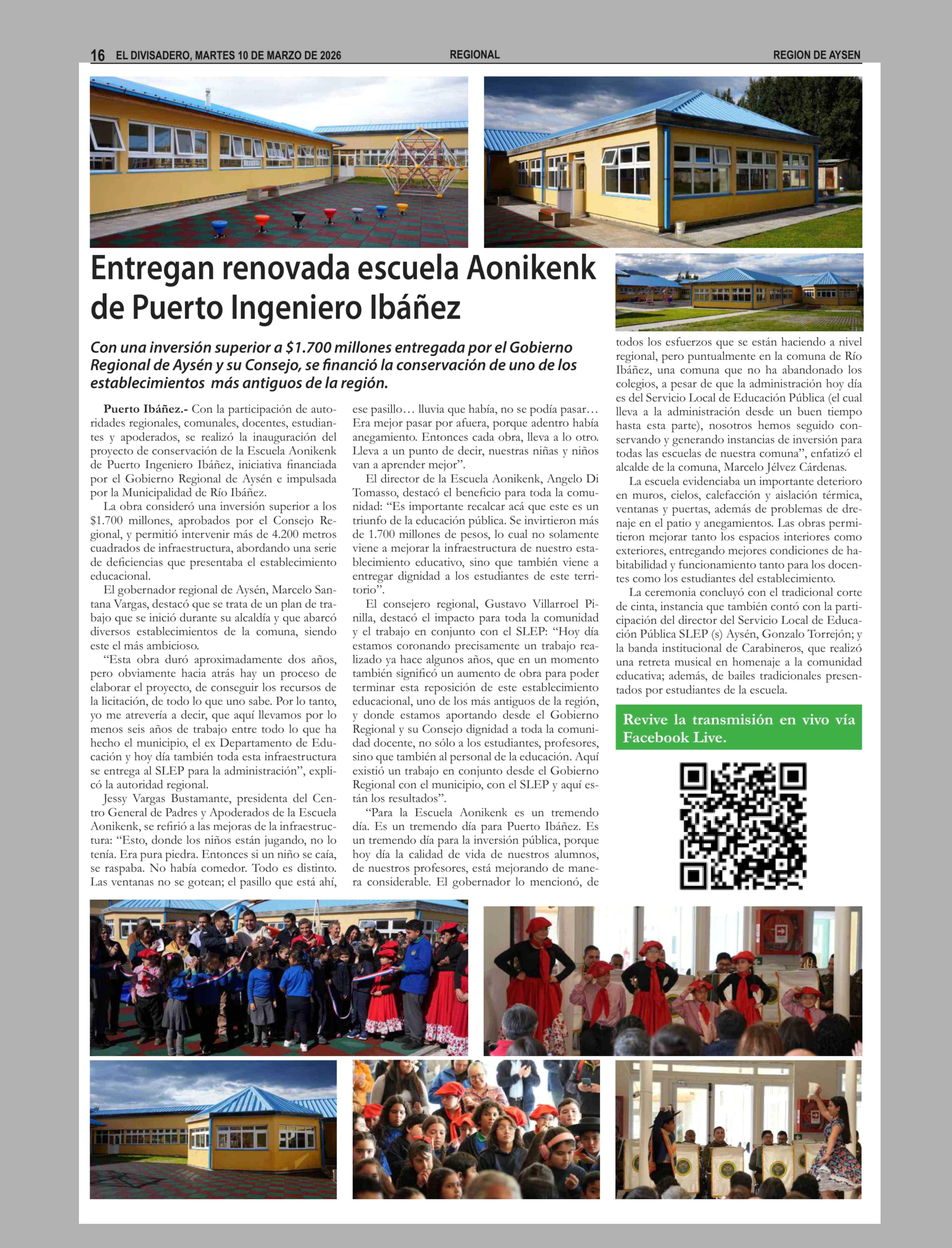 Entregan renovada escuela Aonikenk de Puerto Ingeniero Ibáñez 10-03-2026 El Divisadero |