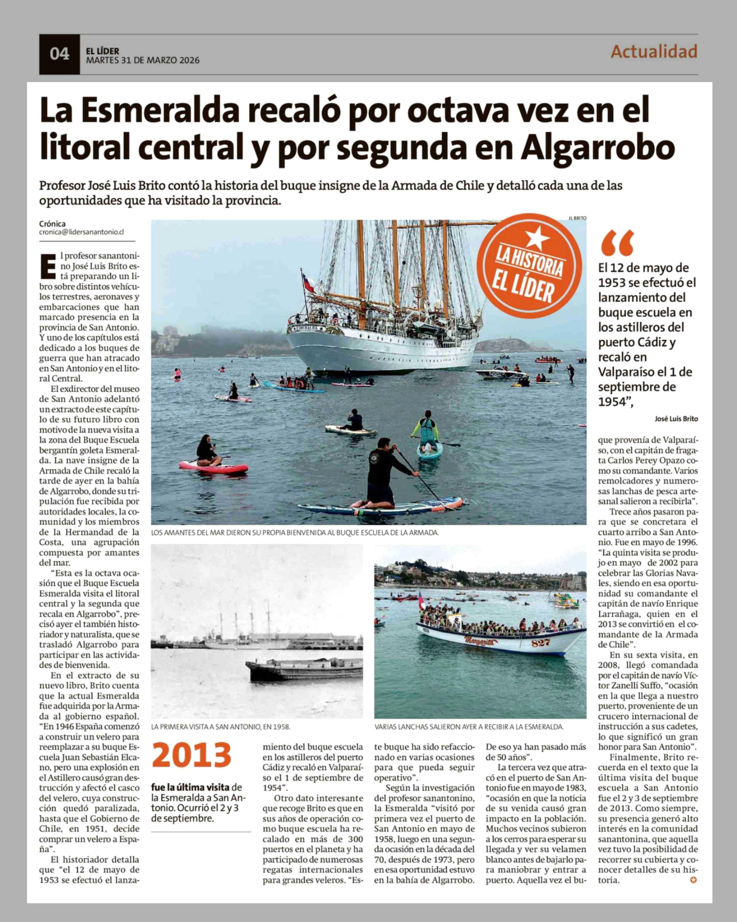 La Esmeralda recaló por octava vez en el litoral central y por segunda en Algarrobo 31-03-2026 El Líder |