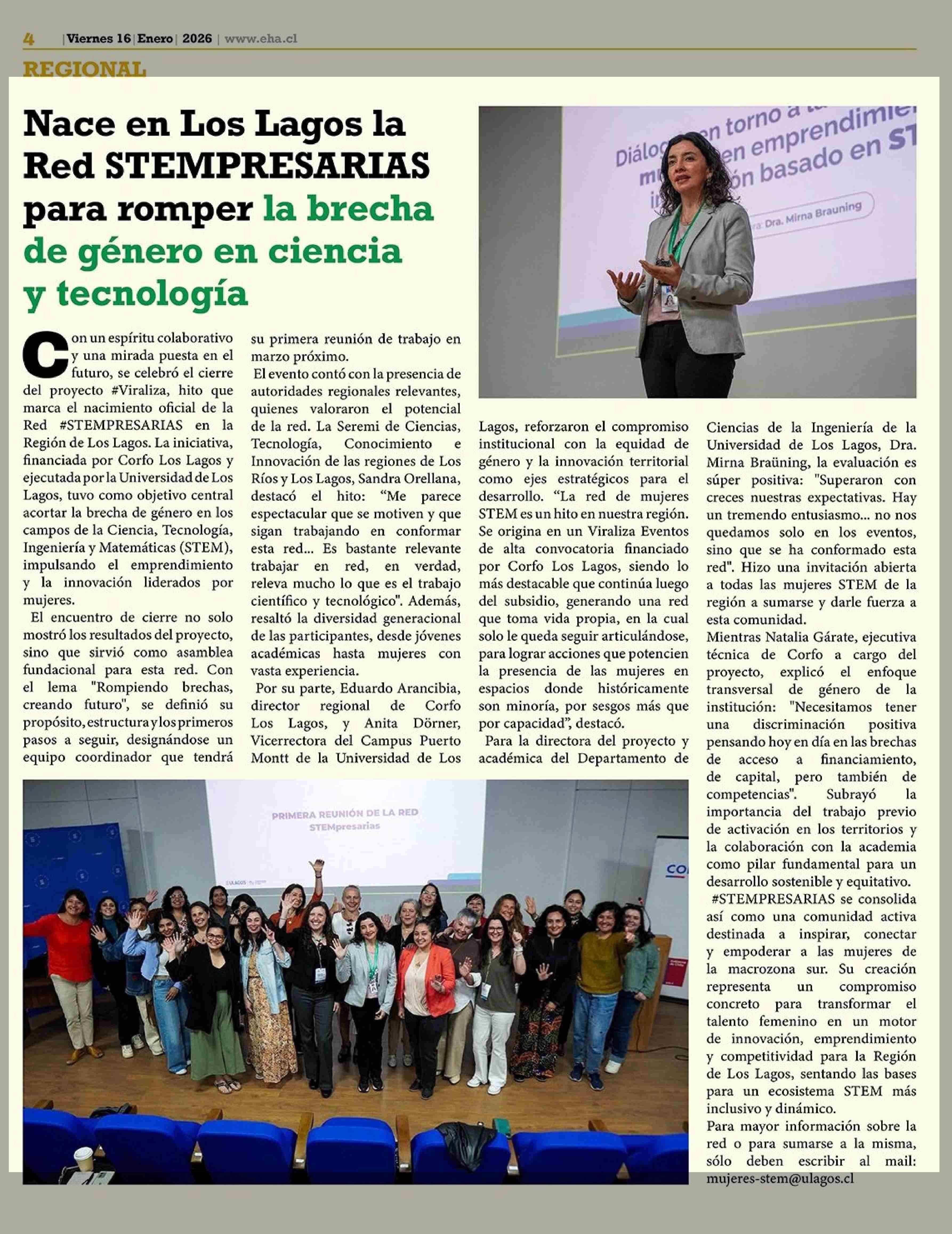 Título: Nace en Los Lagos la Red STEMPRESARIAS para romper la brecha de género en ciencia y tecnología