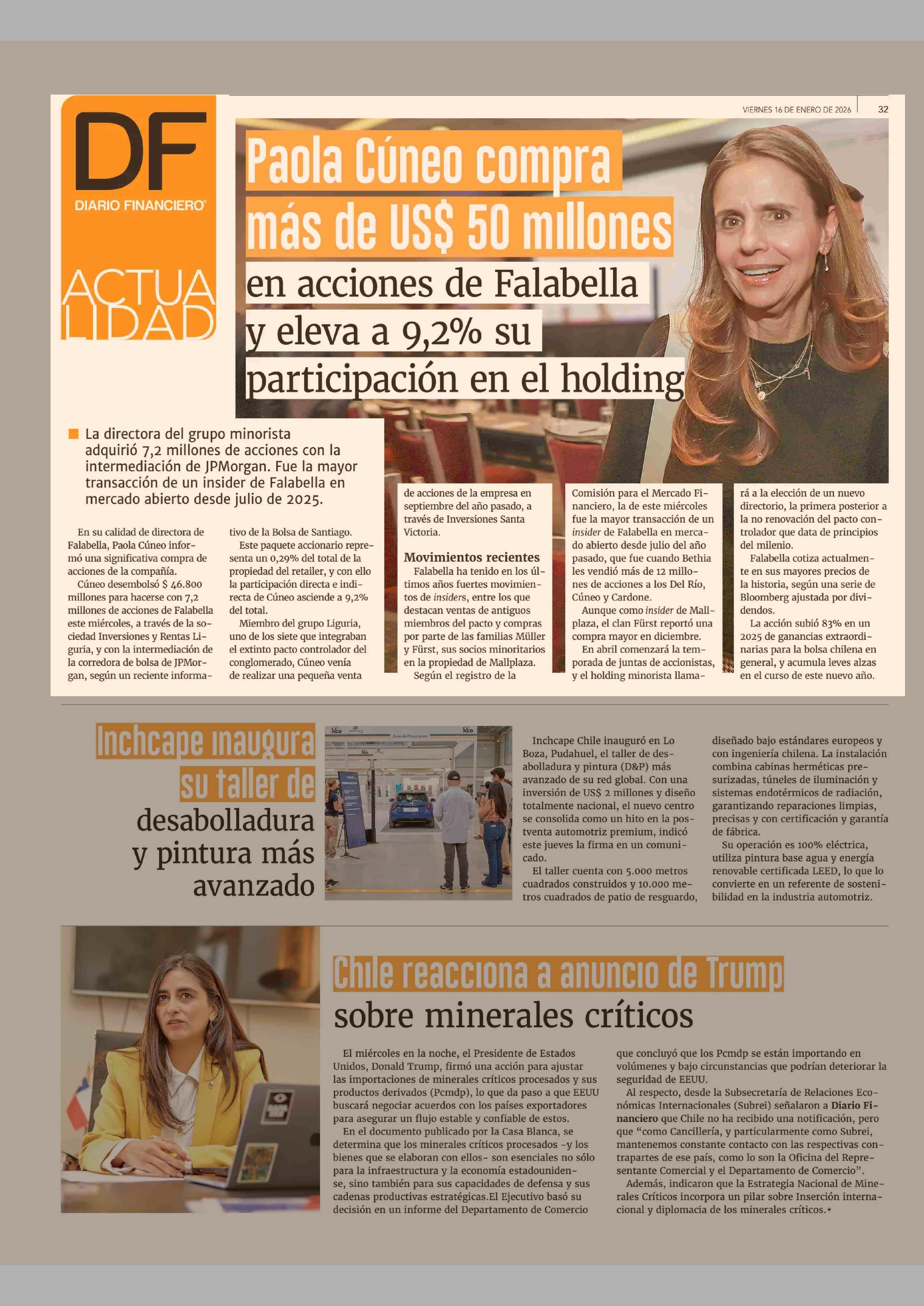 Título: Paola Cúneo compra más de US$ 50 millones en acciones de Falabella y eleva a 9,2% su participación en el holding
