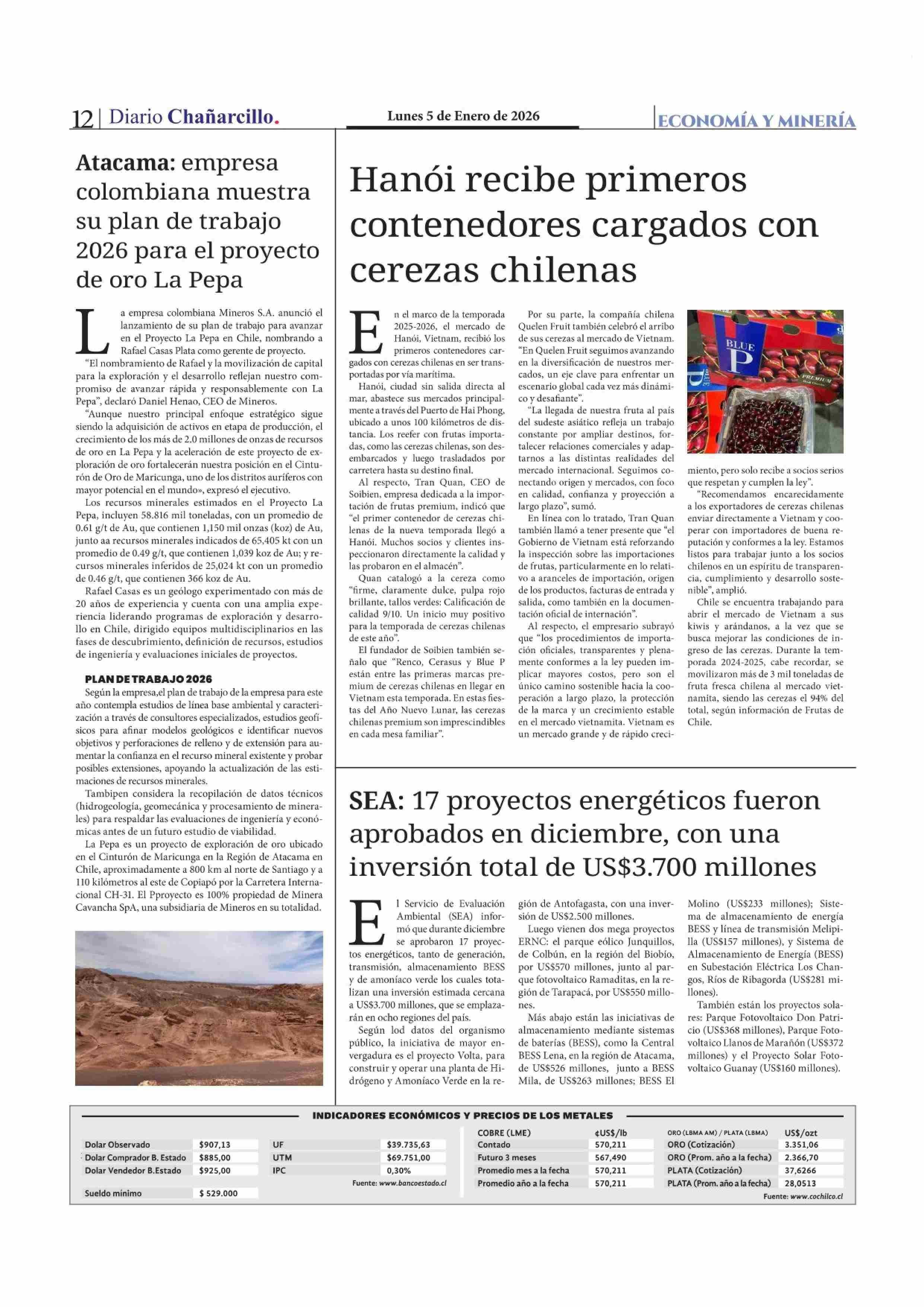 SEA: 17 proyectos energéticos fueron aprobados en diciembre, con una inversión total de US$3.700 millones 05-01-2026 Diario Chañarcillo |