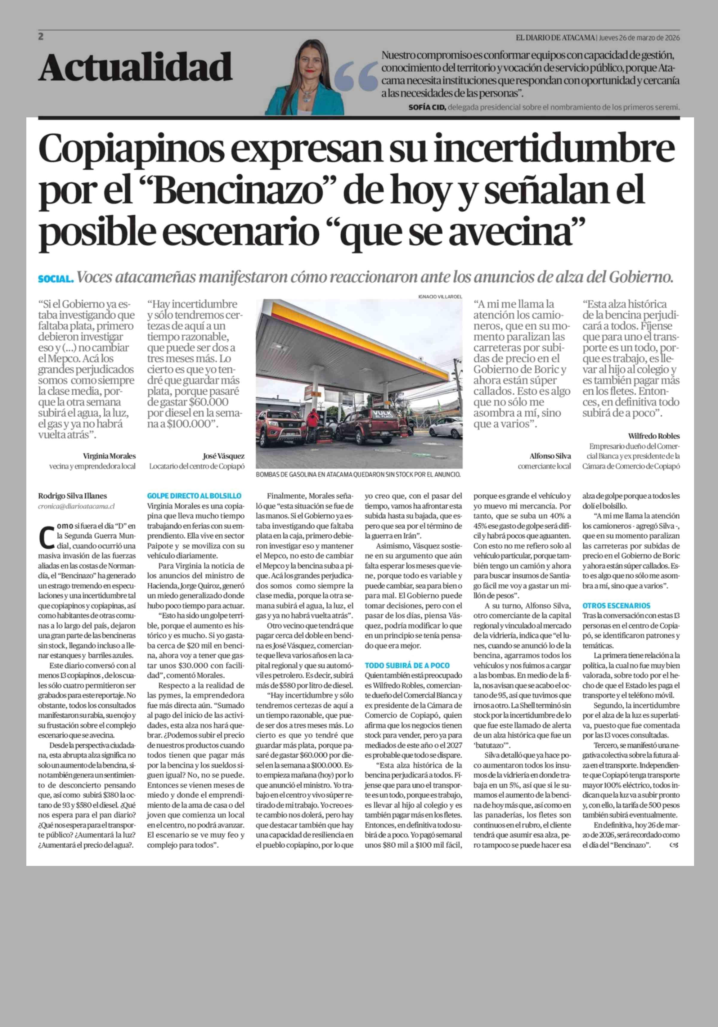Título: Copiapinos expresan su incertidumbre por el "Bencinazo" de hoy y señalan el posible escenario "que se avecina"