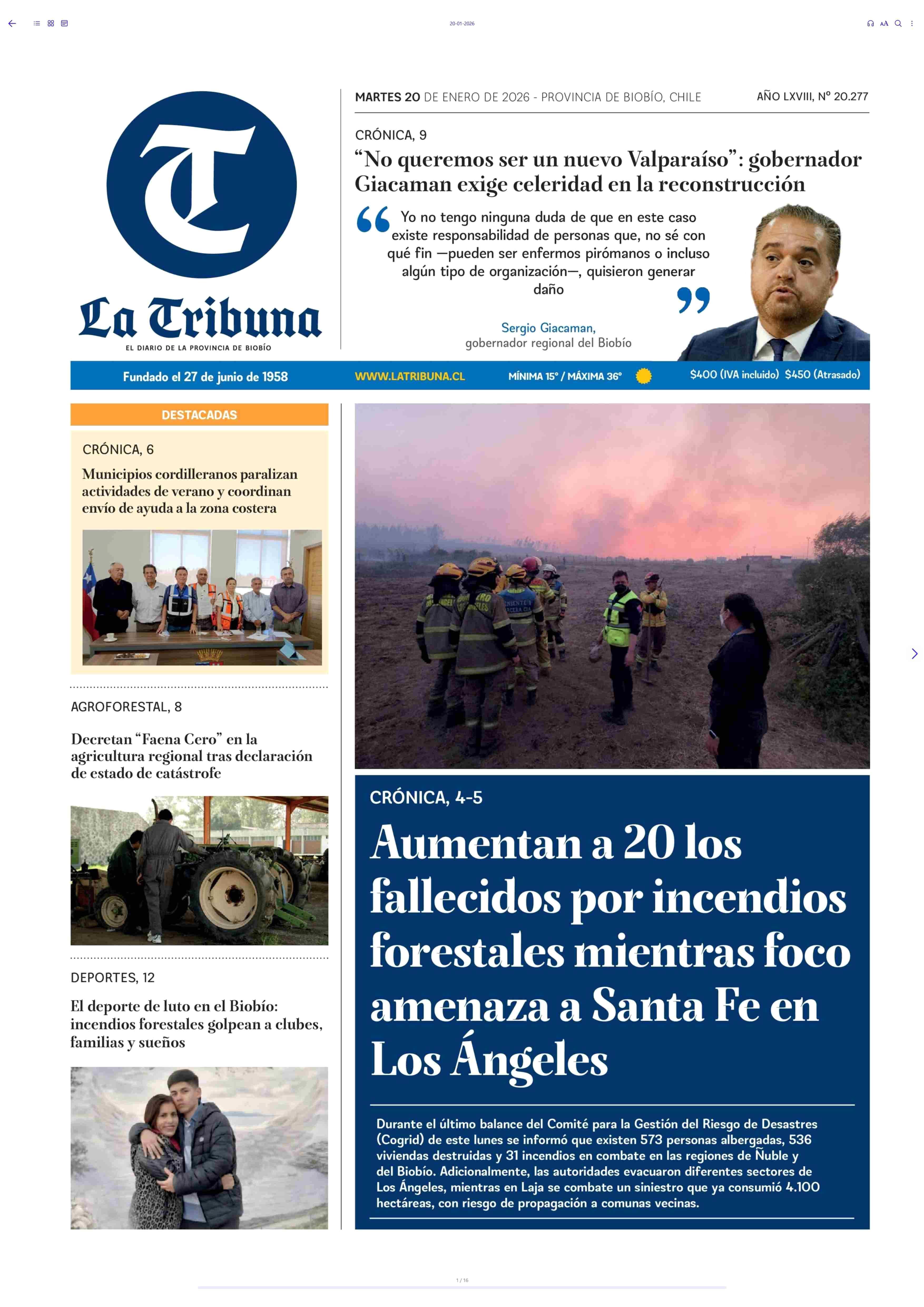 | Fecha: | 20-01-2026 | Sector: | Portada | Región: | Región del Bío-Bío |