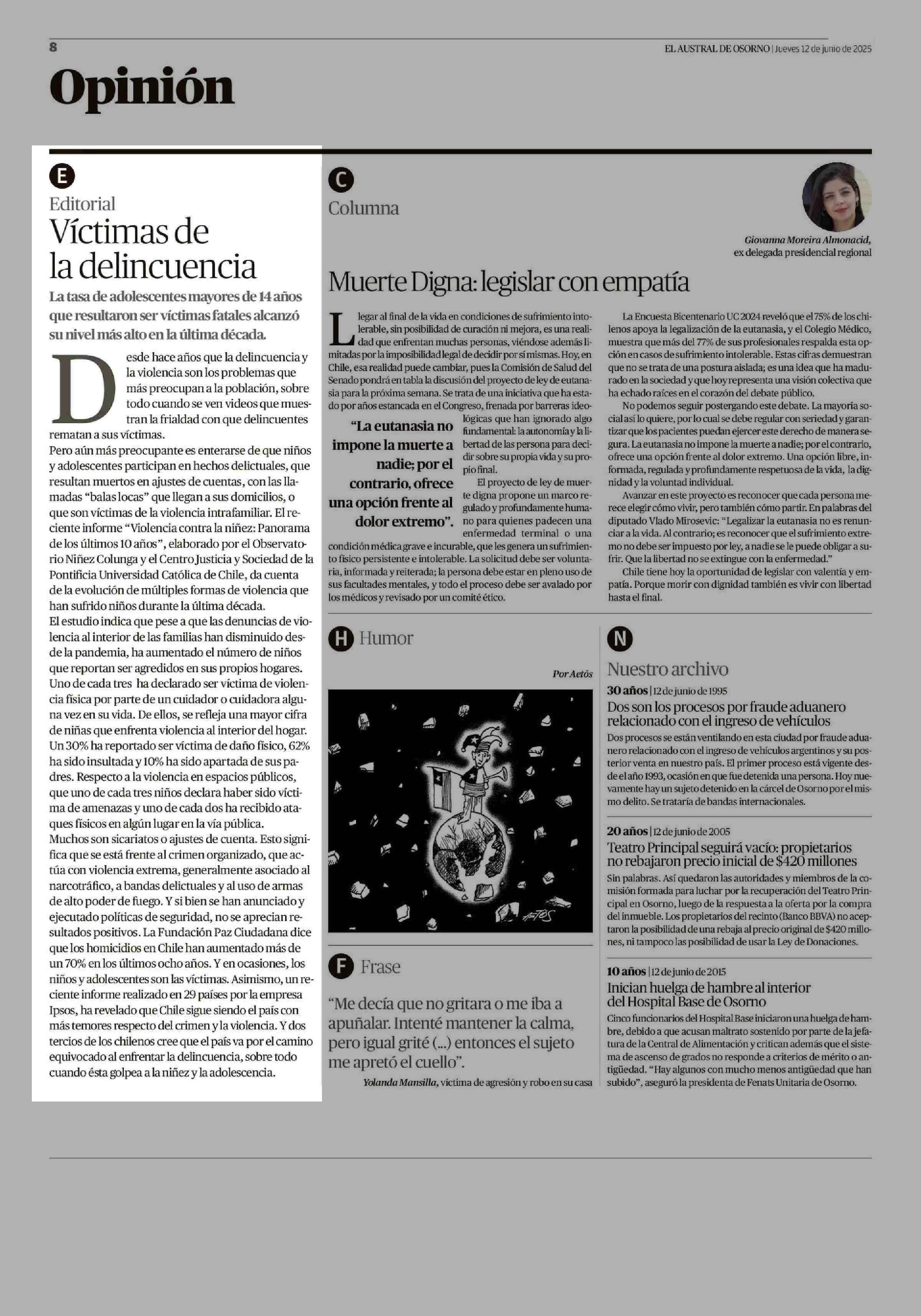 Editorial: Víctimas de la delincuencia 12-06-2025 El Austral de Osorno |
