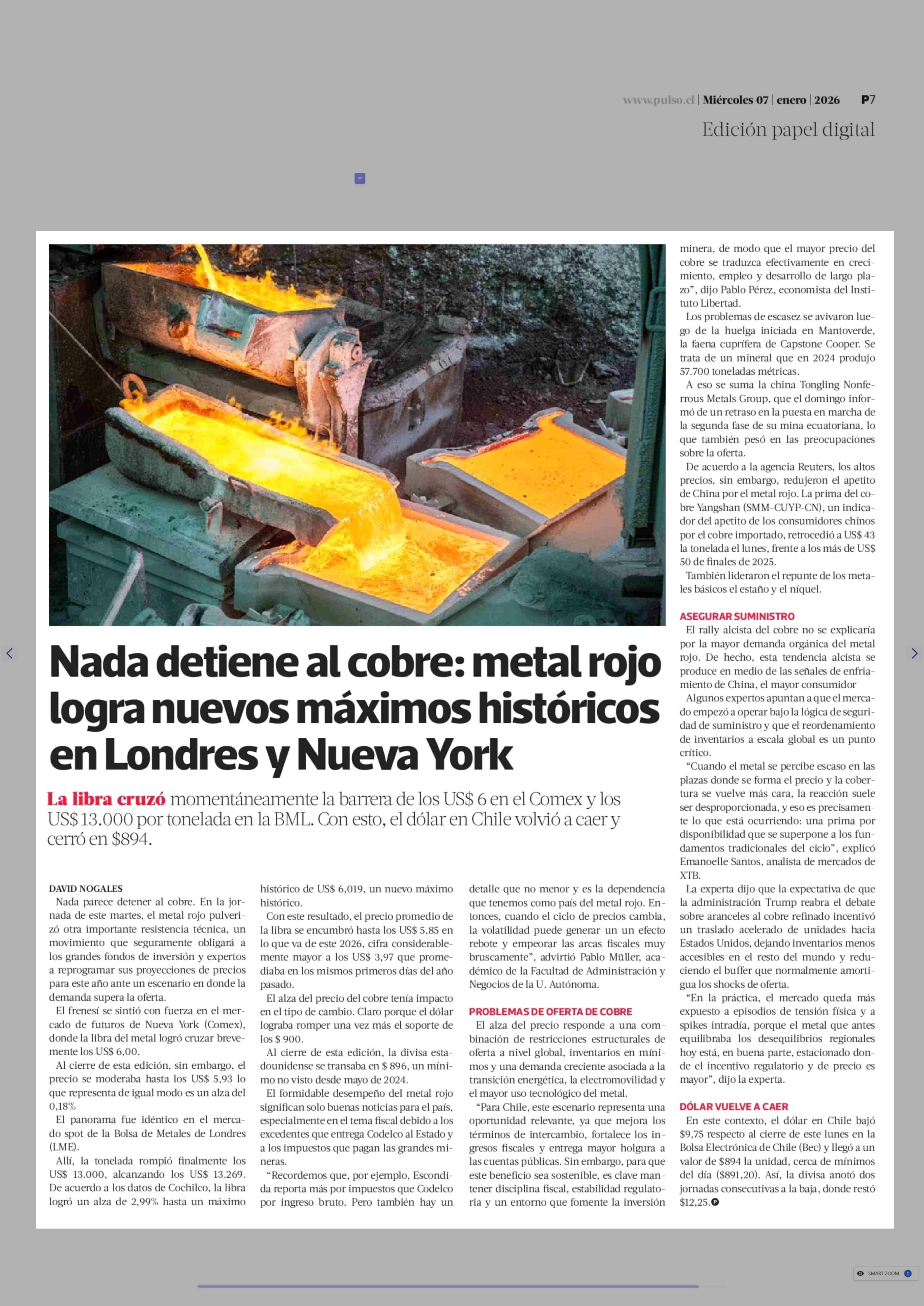 Título: Nada detiene al cobre: metal rojo logra nuevos máximos históricos en Londres y Nueva York