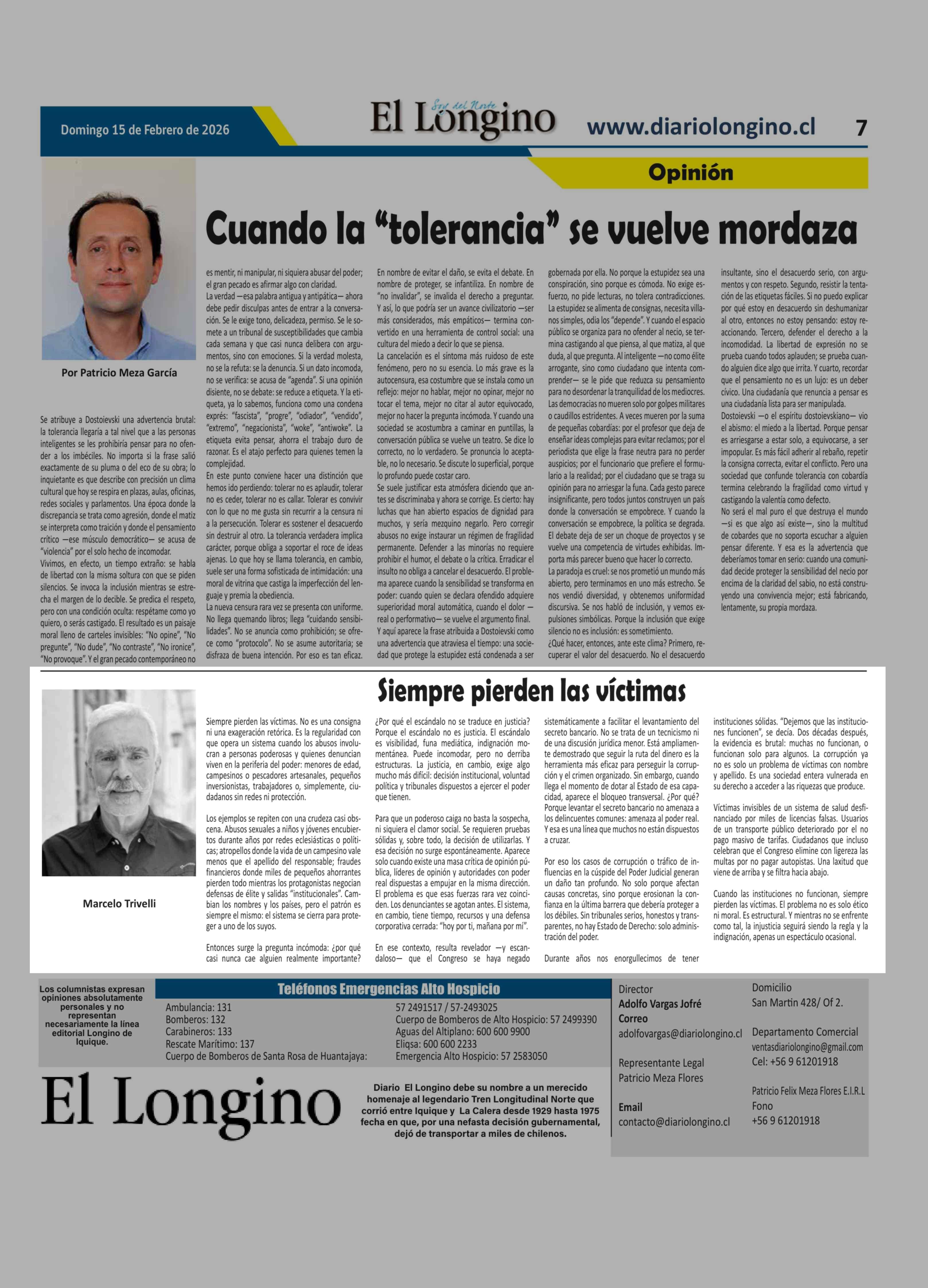 | Fecha: | 15-02-2026 | Sector: | Columnas de Opinión | Región: | Región de Tarapacá |