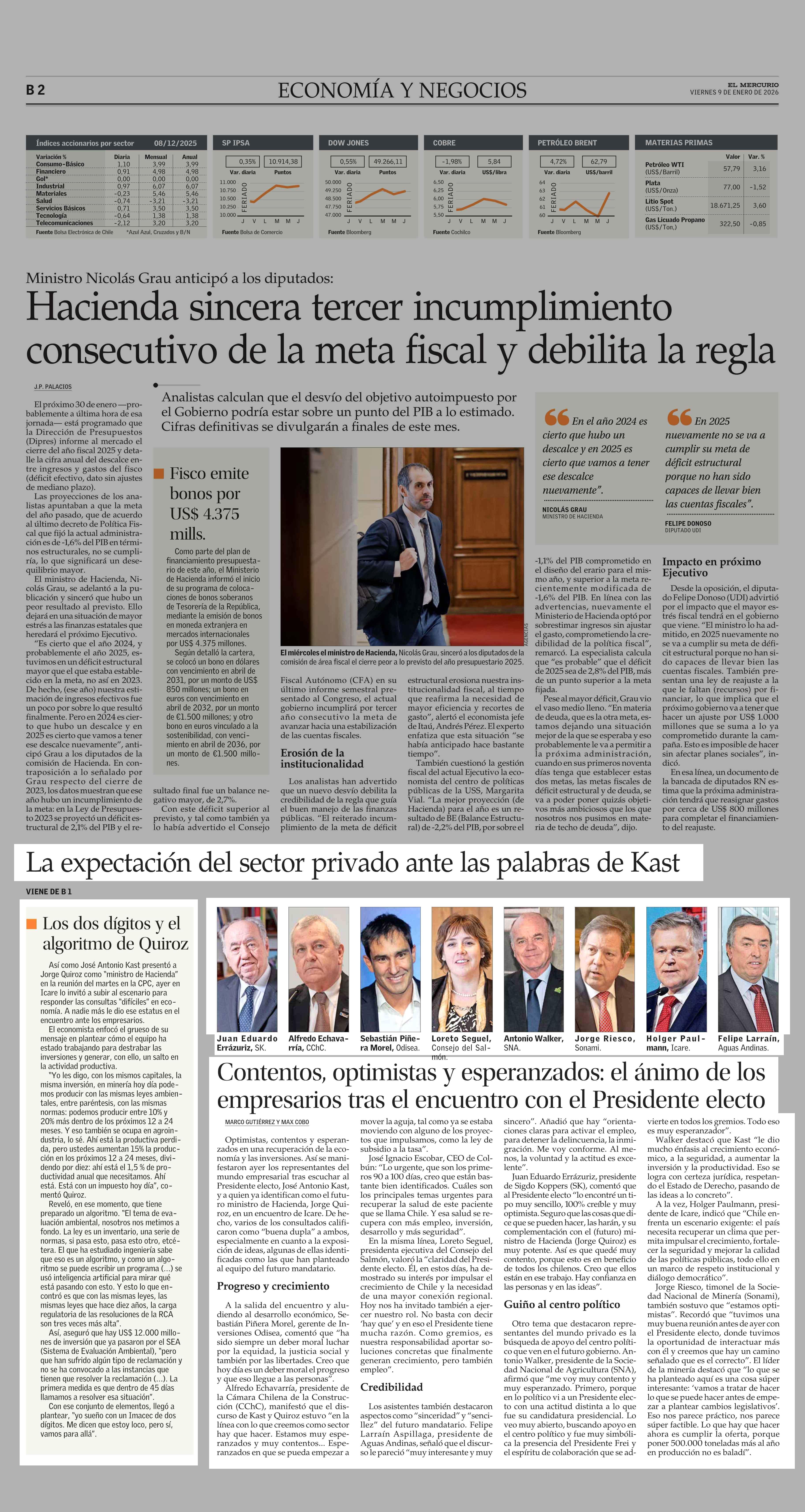La expectación del sector privado ante las palabras de Kast 09-01-2026 El Mercurio |