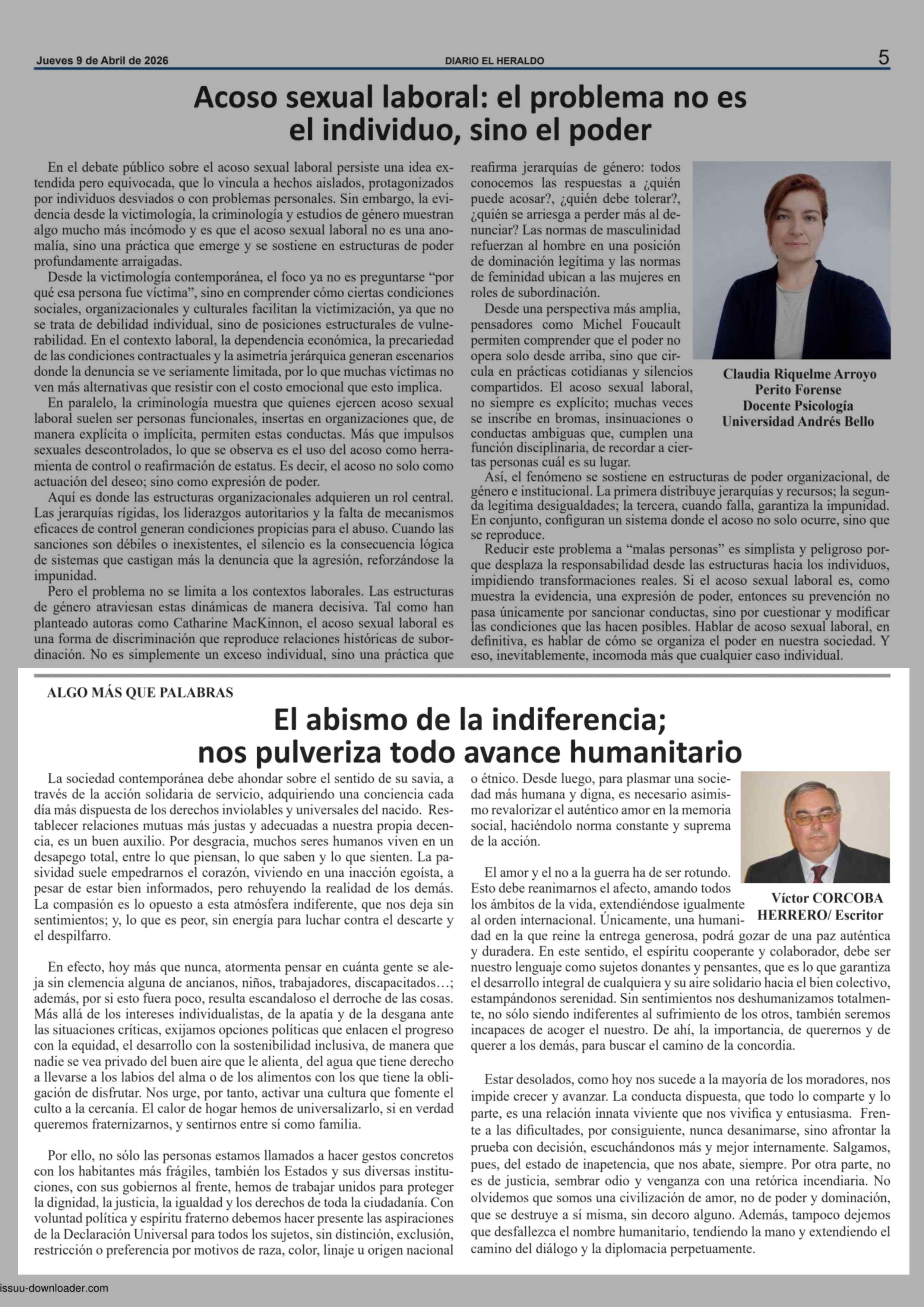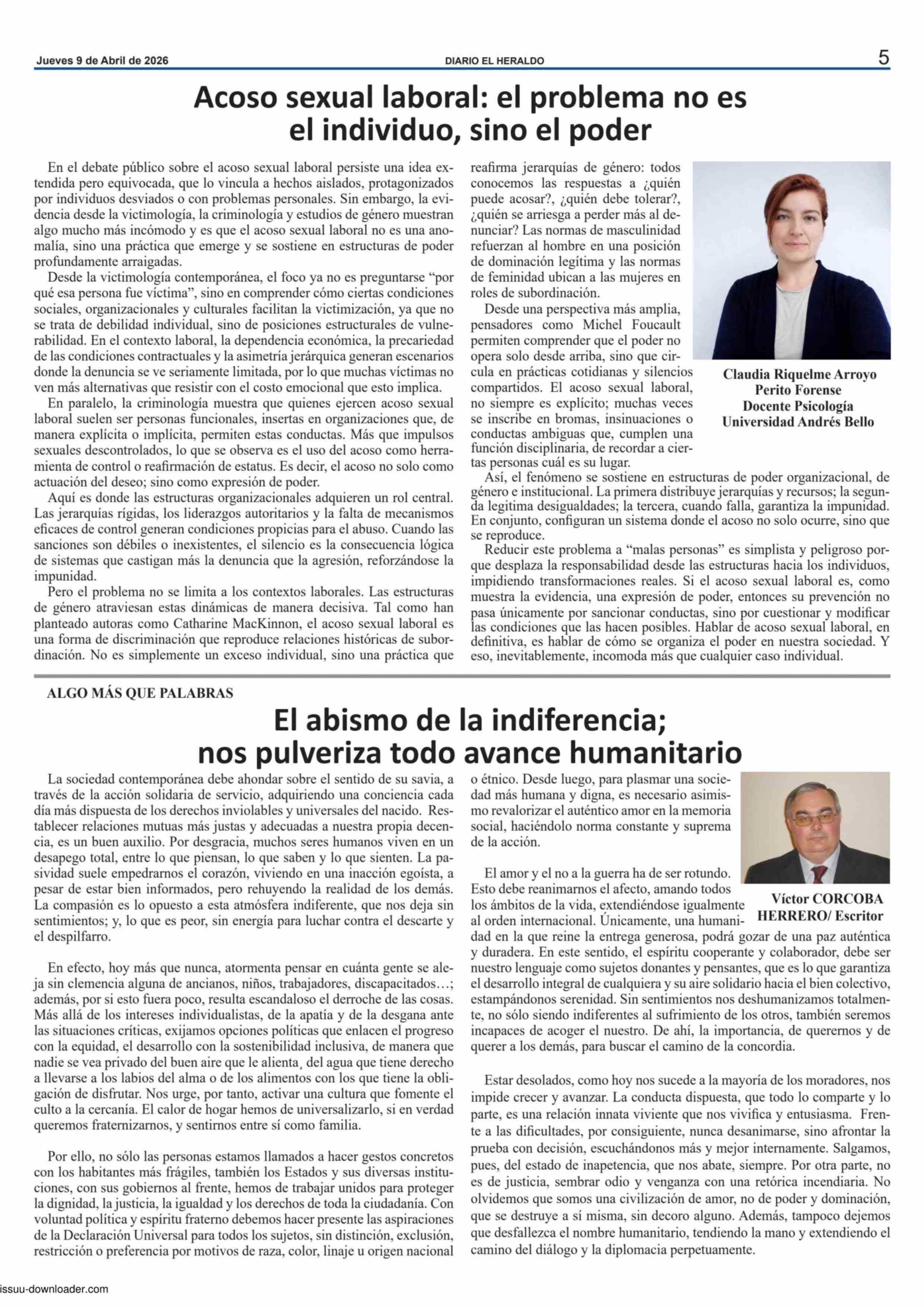 Columnas de Opinión: El abismo de la indiferencia; nos pulveriza todo avance humanitario 09-04-2026 El Heraldo |