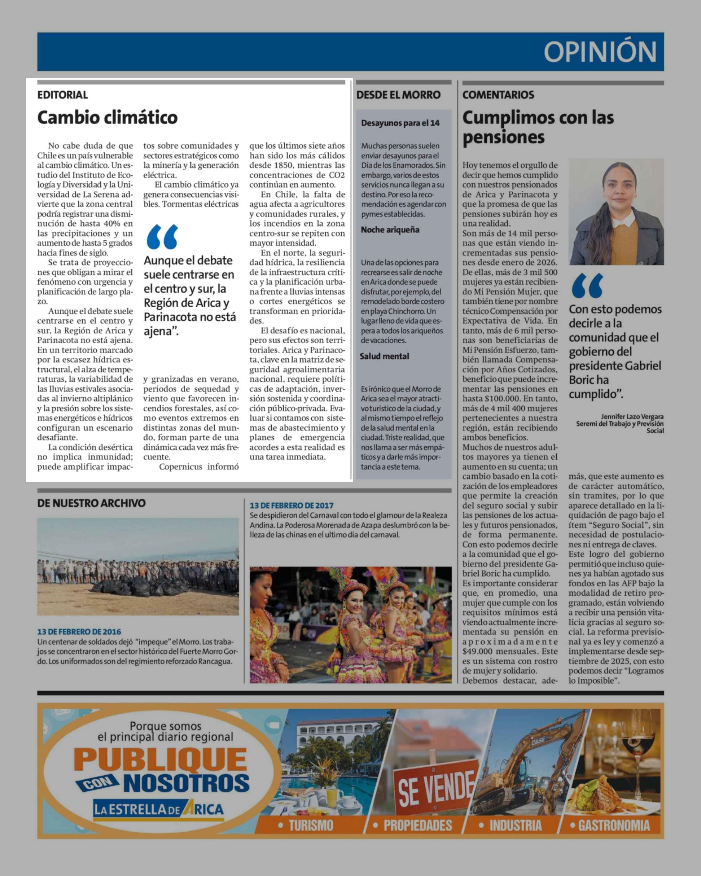 | Fecha: | 13-02-2026 | Sector: | Editorial | Región: | Región de Arica y Parinacota |