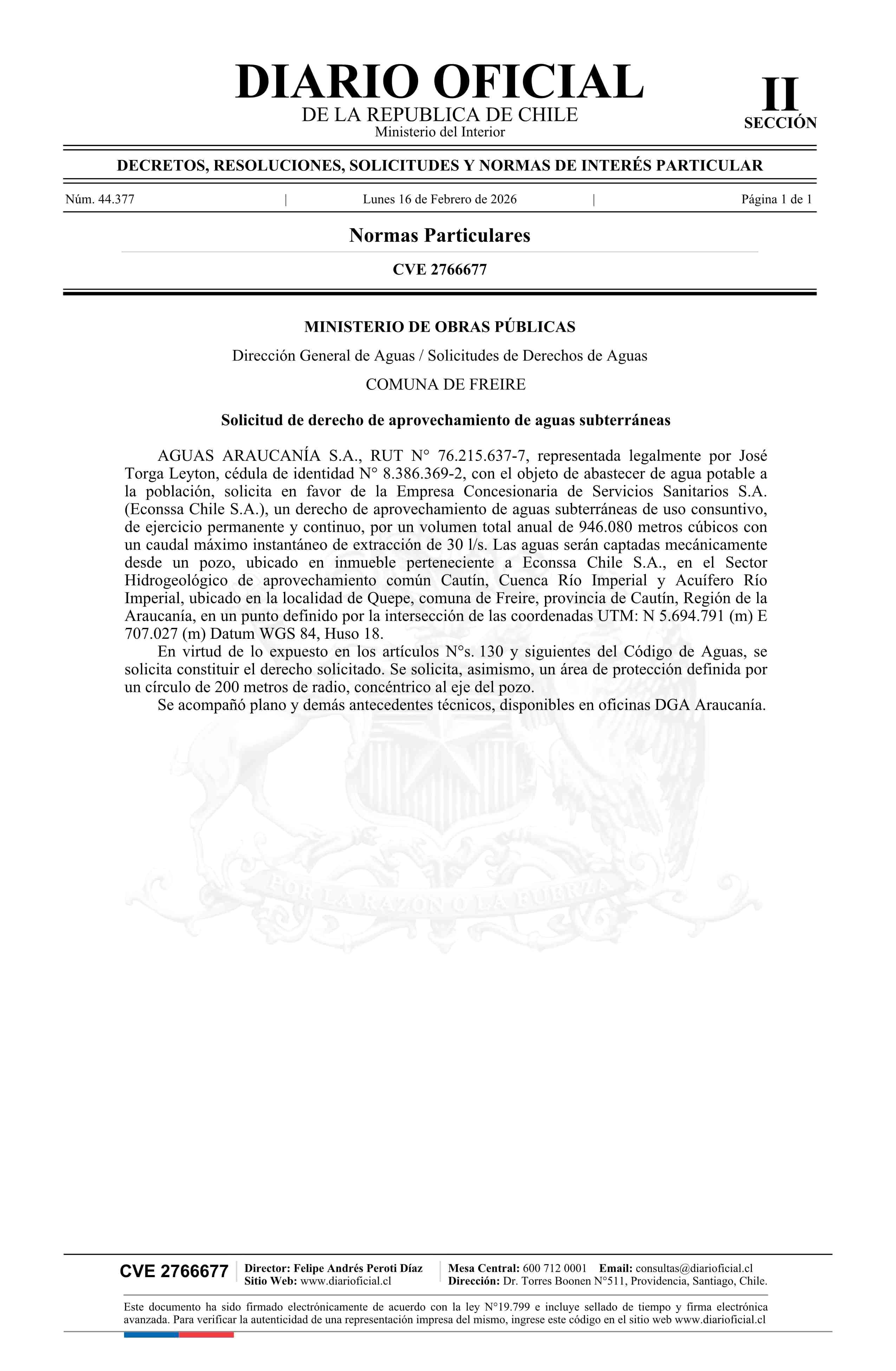 Solicitud Aguas Araucanía S.A.