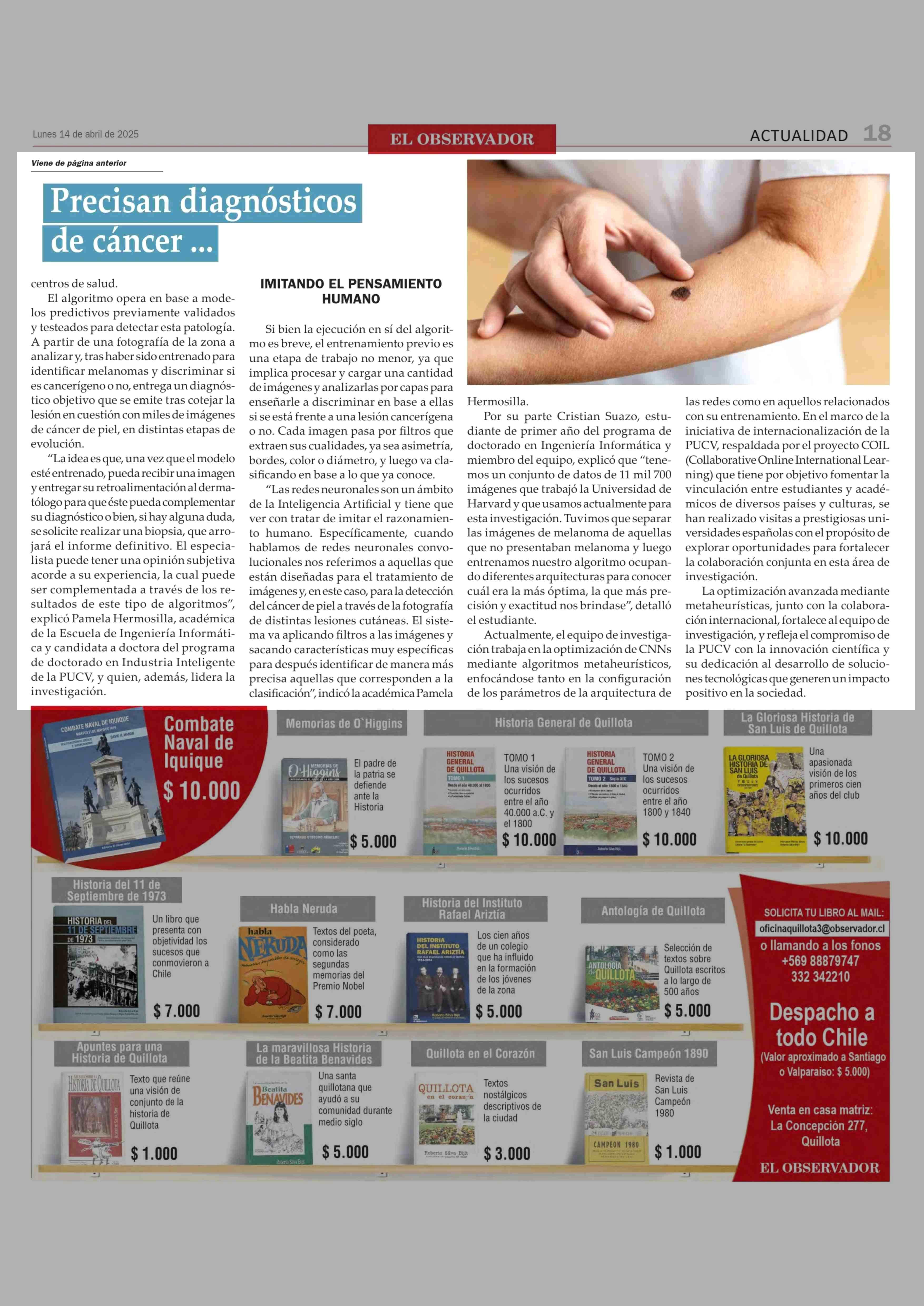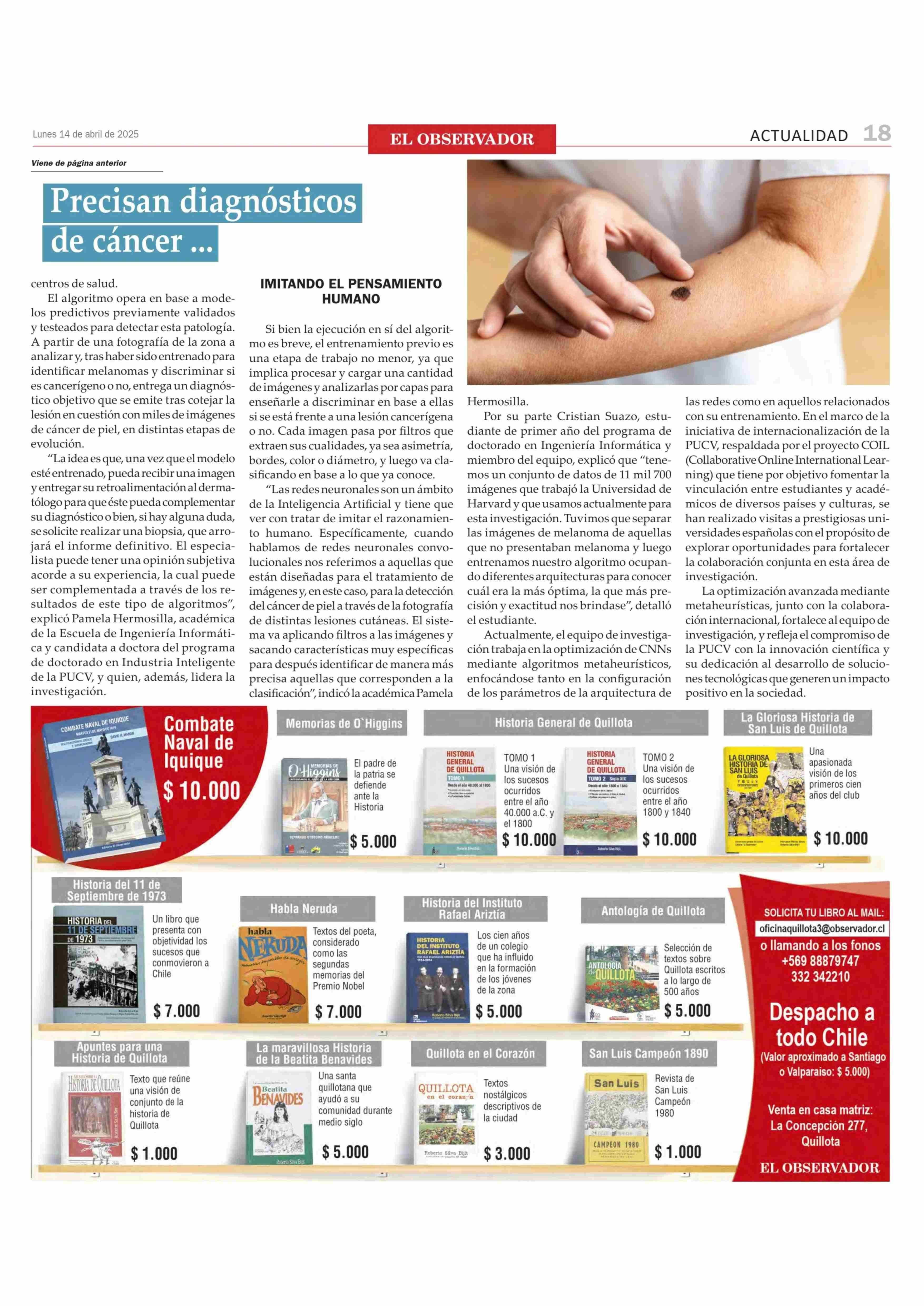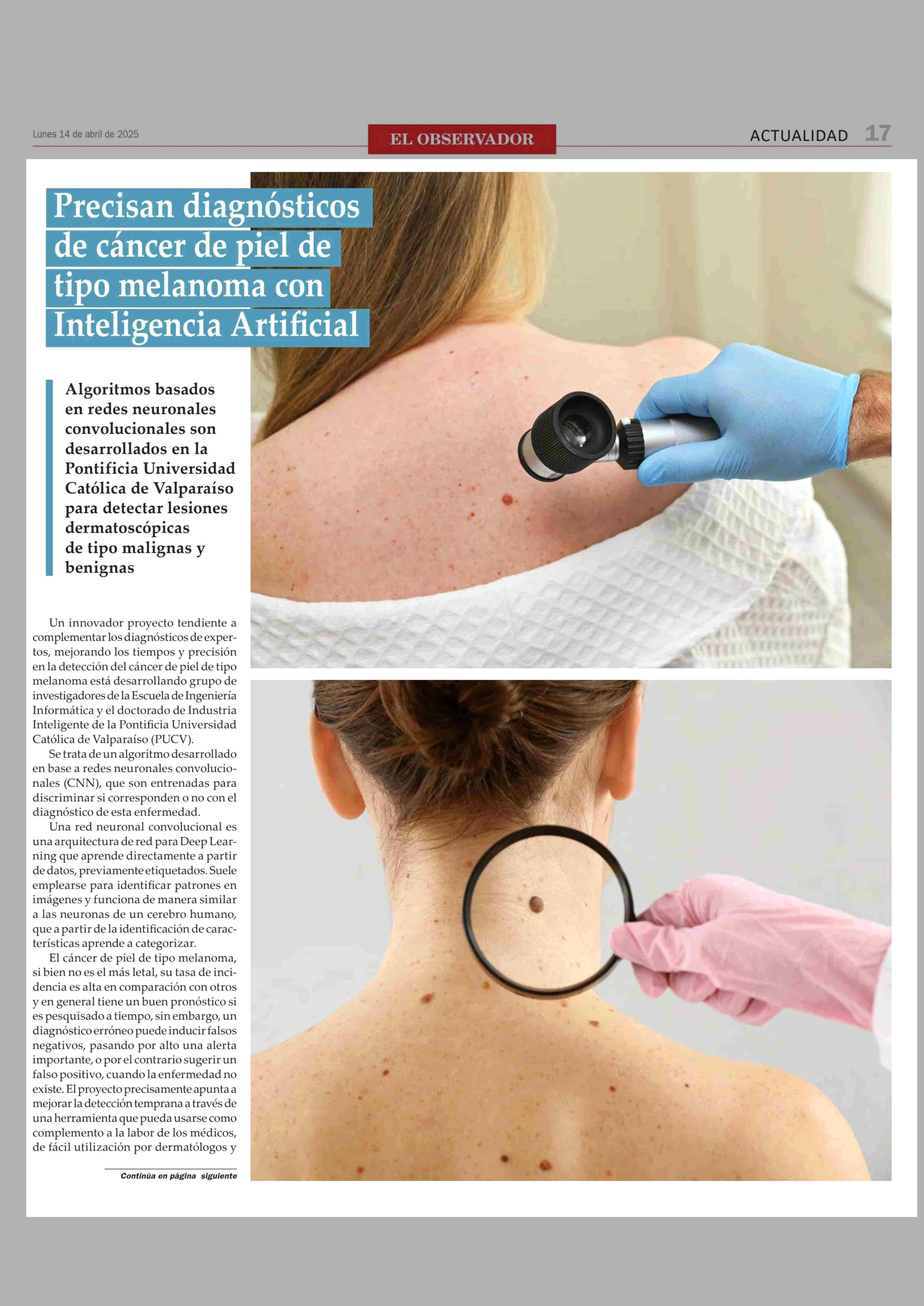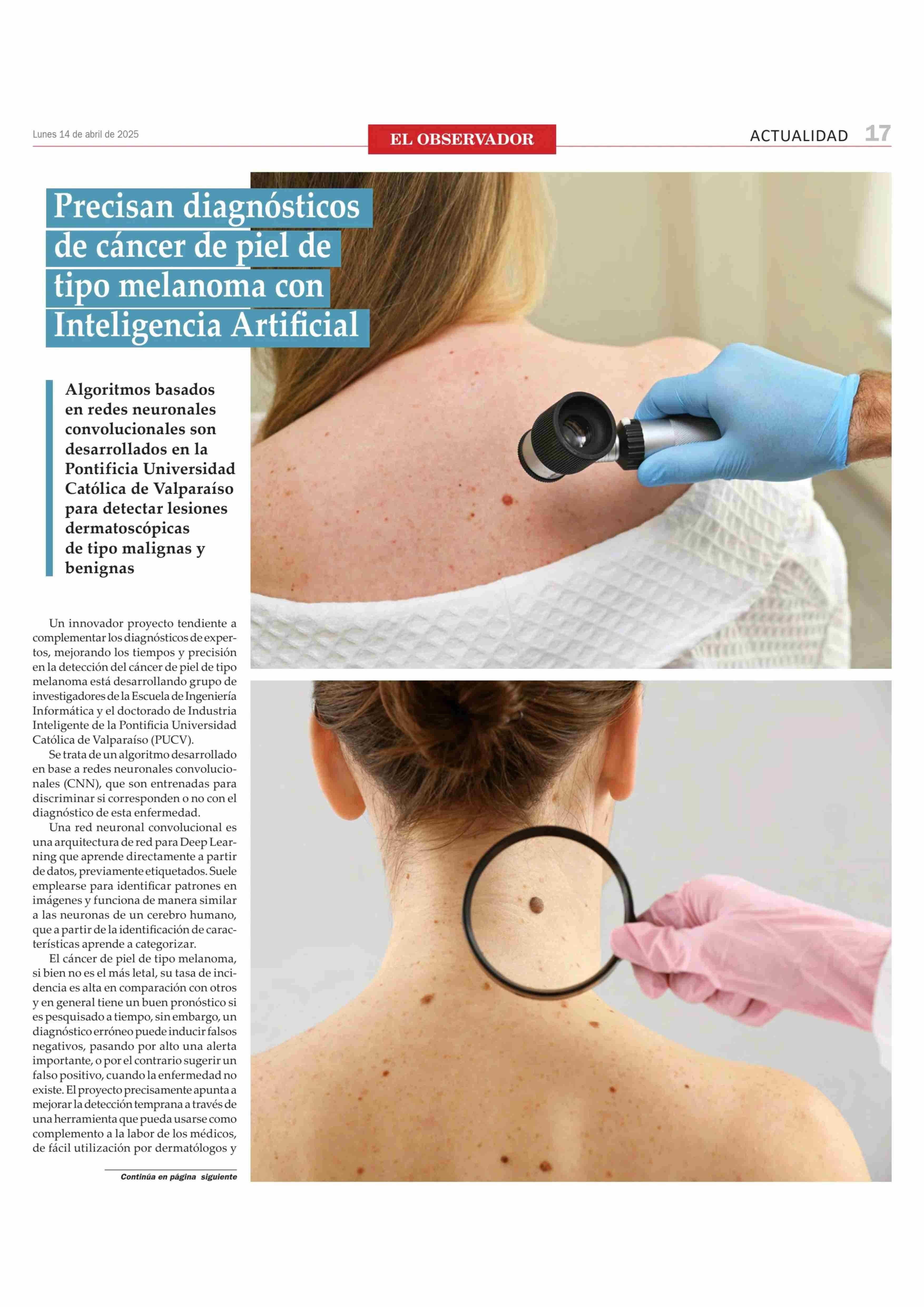 Precisan diagnósticos de cáncer de piel de tipo melanoma con Inteligencia Artificial 14-04-2025 El Observador Vespertino |