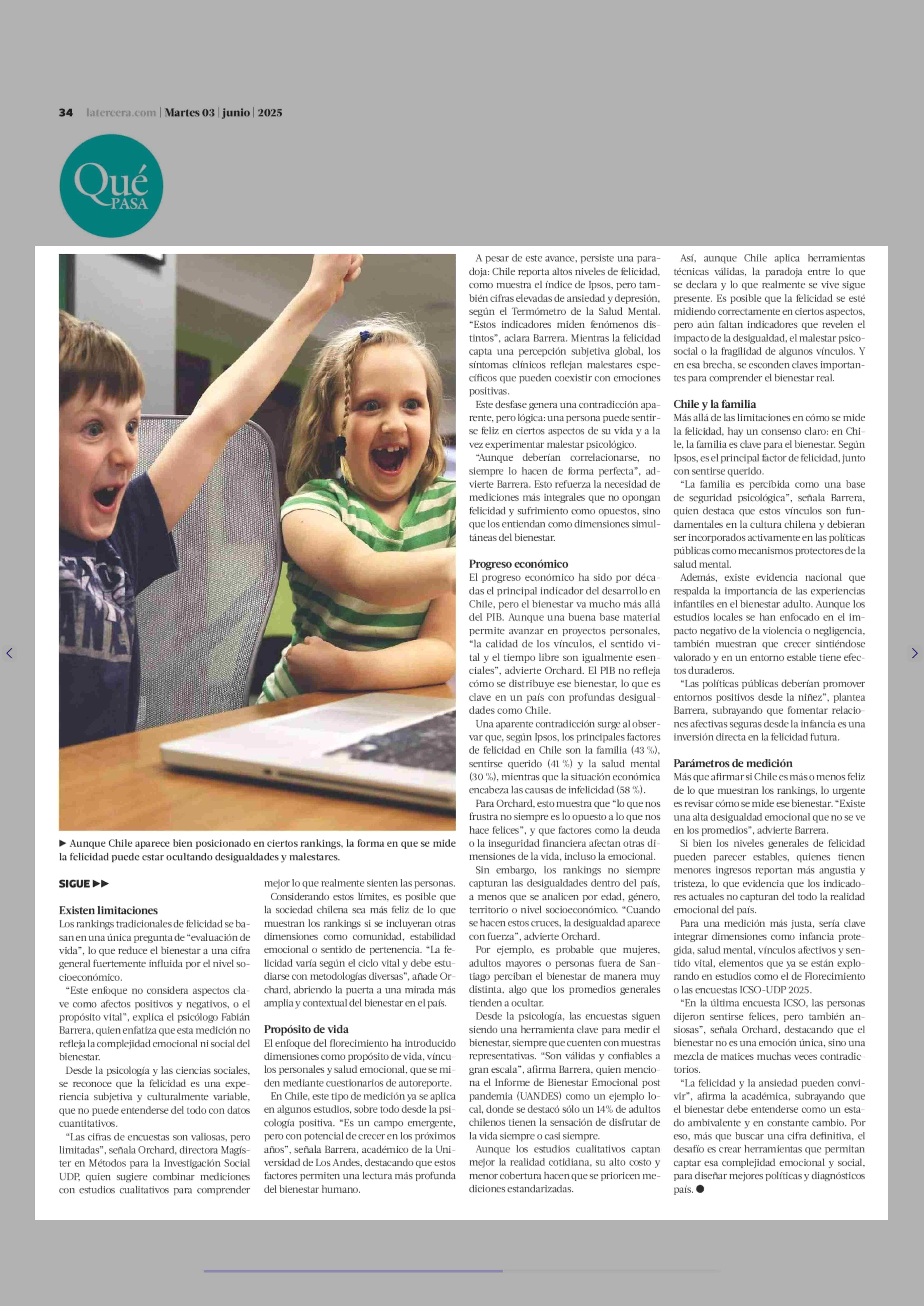 Qué tan felices somos los chilenos Depende... 03-06-2025 La Tercera |