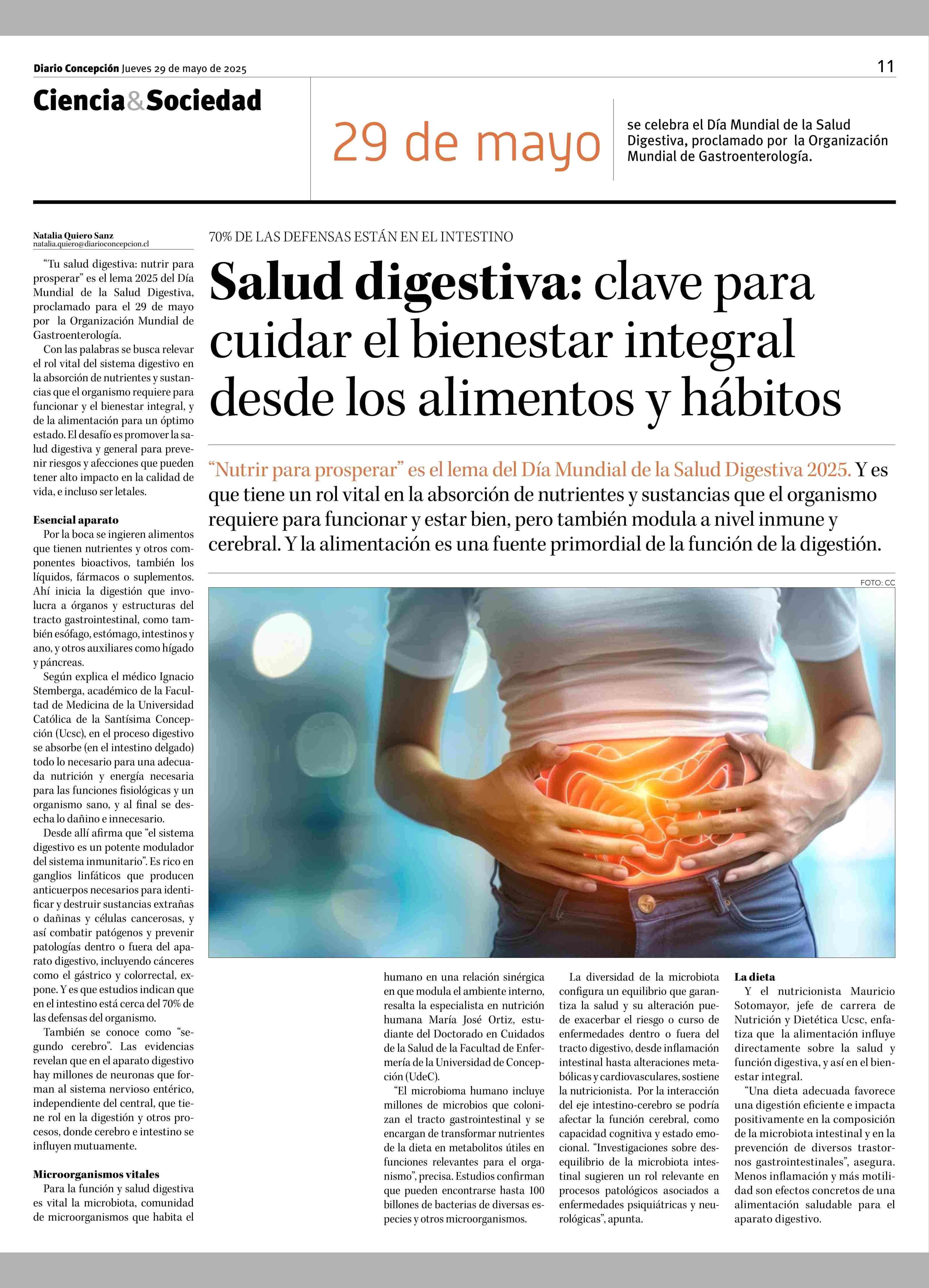 Salud digestiva: clave para cuidar el bienestar integral desde los alimentos y hábitos 29-05-2025 Diario Concepción |