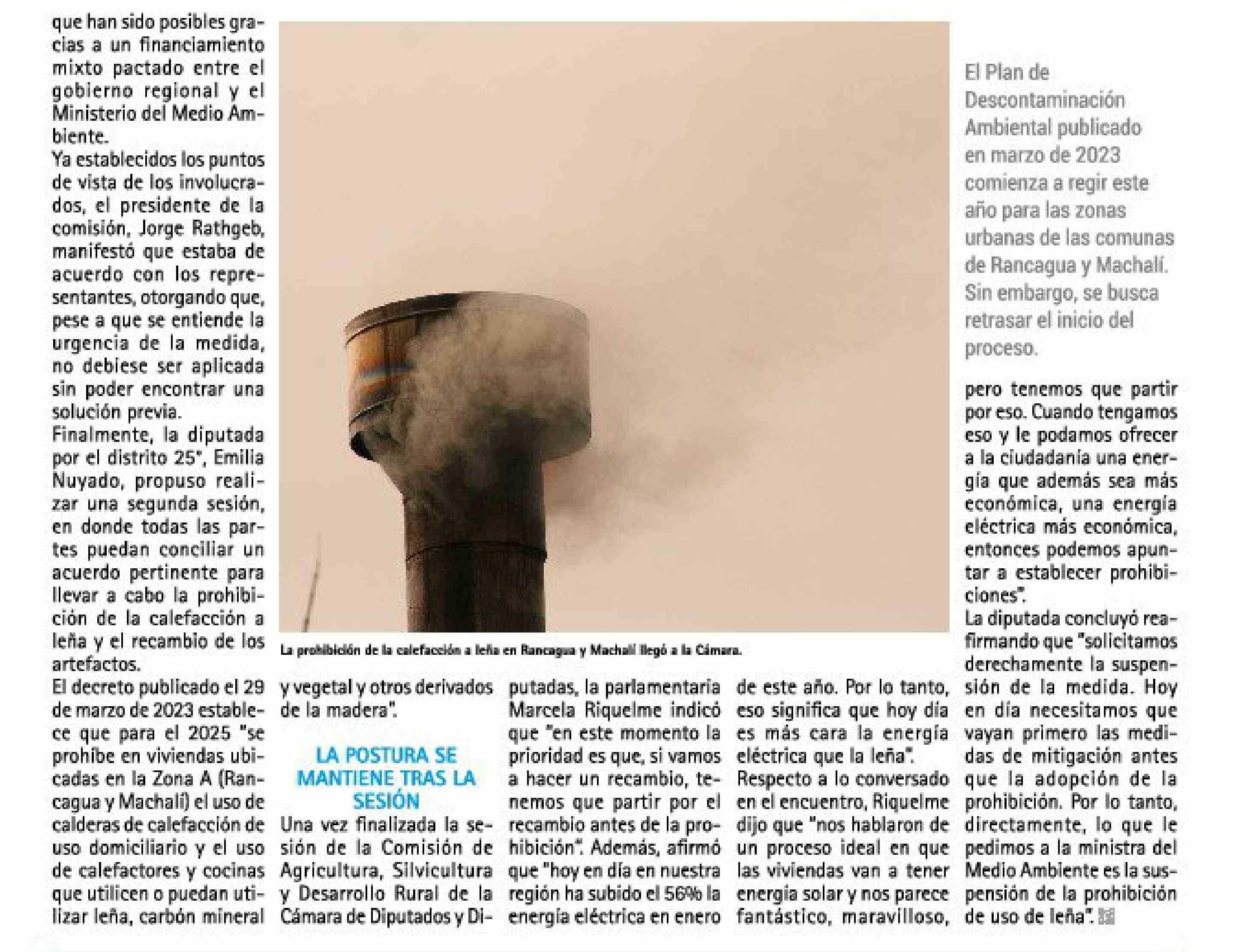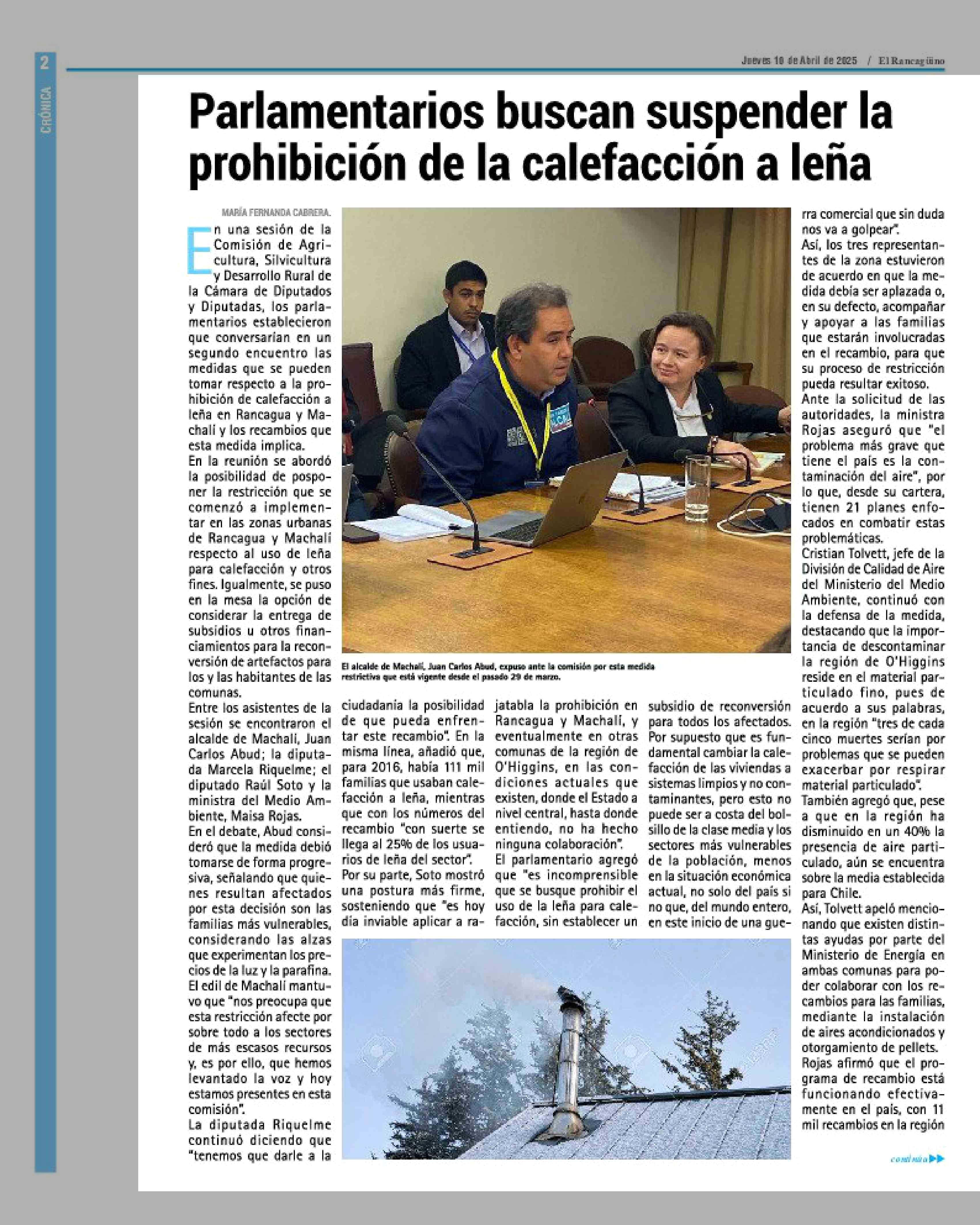 Parlamentarios buscan suspender la prohibición de la calefacción a leña 10-04-2025 El Rancagüino |