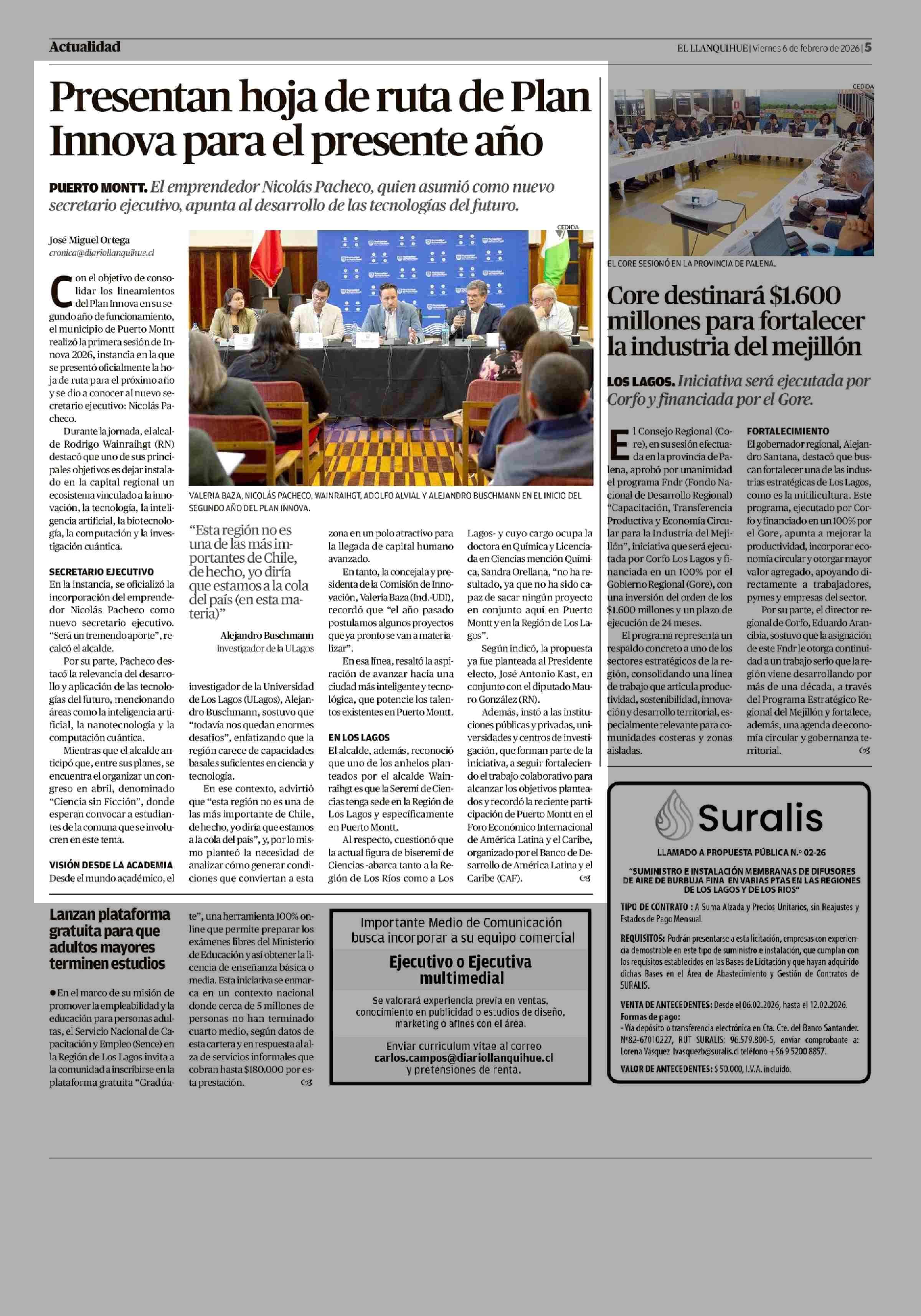 Presentan hoja de ruta de Plan Innova para el presente año 06-02-2026 El Llanquihue |