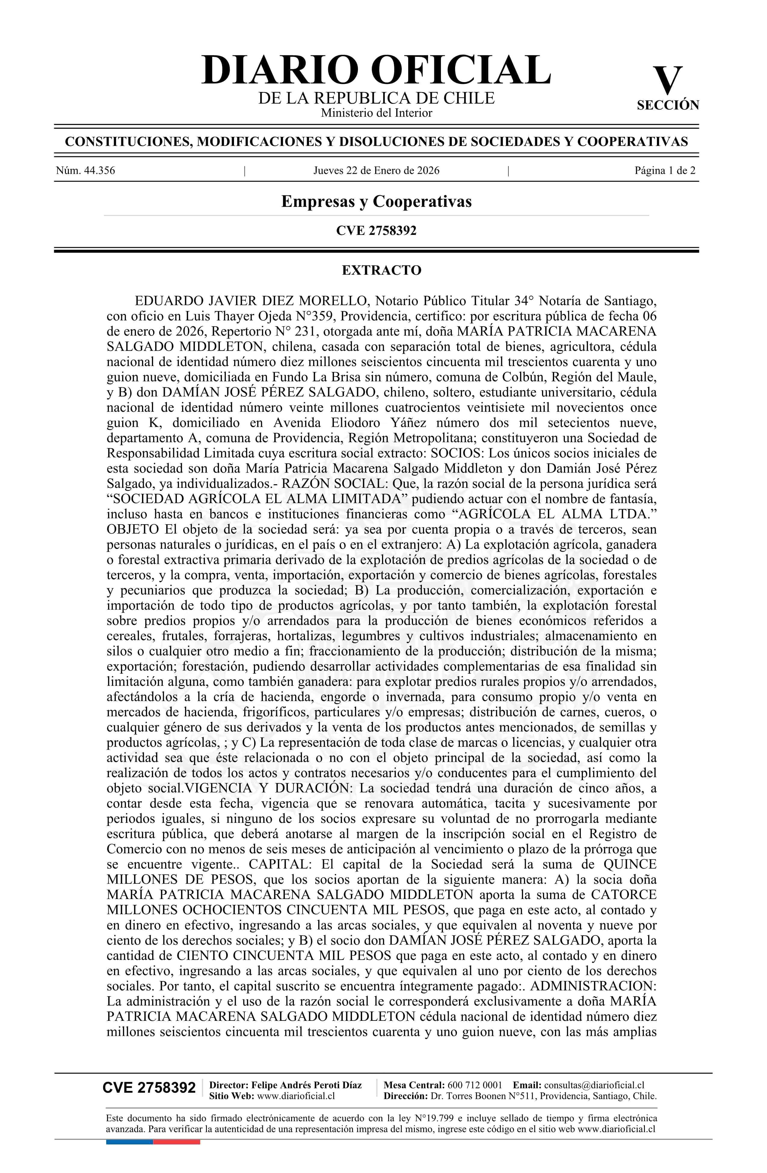 Título: SOCIEDAD AGRÍCOLA EL ALMA LIMITADA