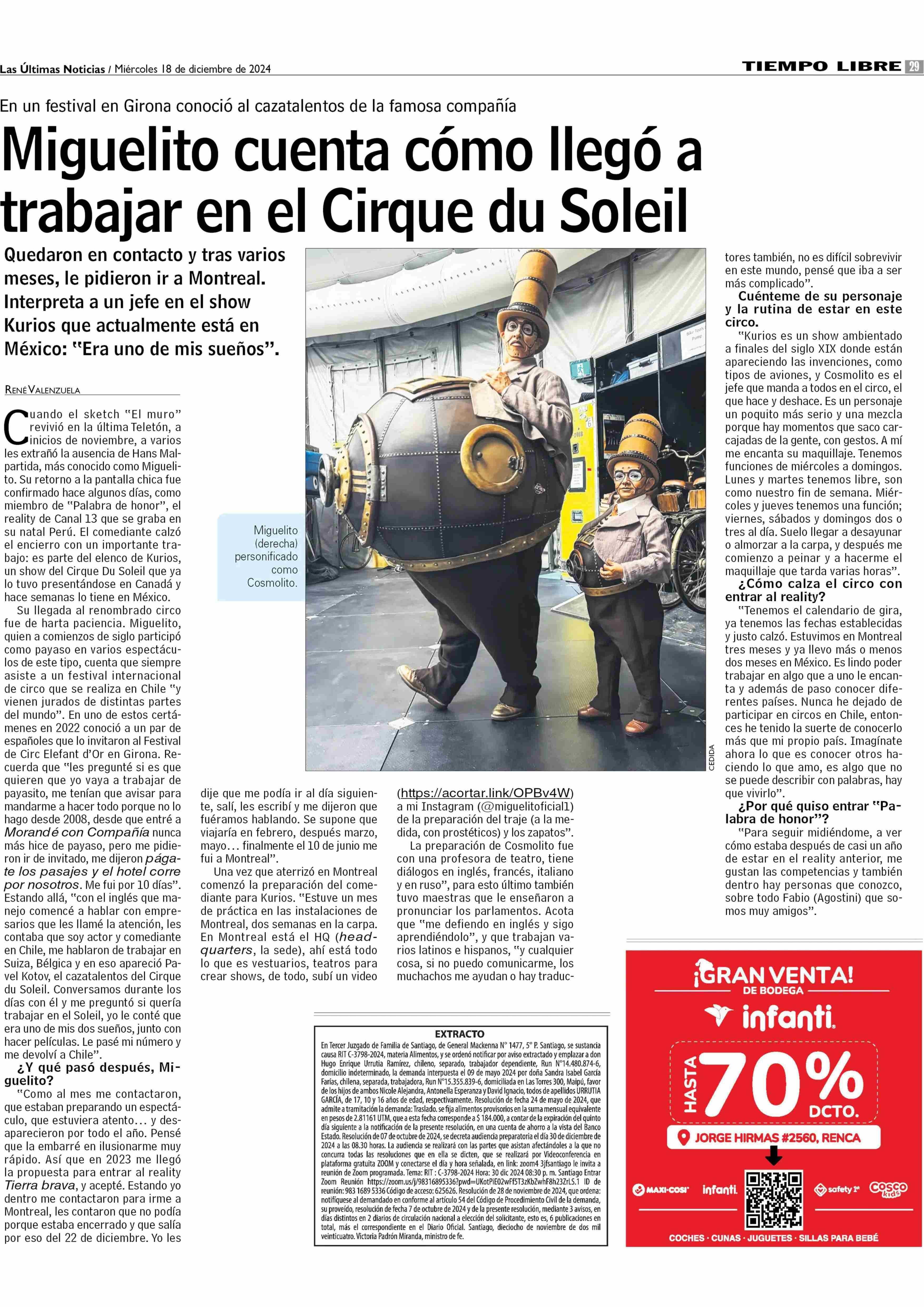 Miguelrto cuenta cómo llegó a trabajar en el Cirque du Soleil 18-12-2024 Las Últimas Noticias |