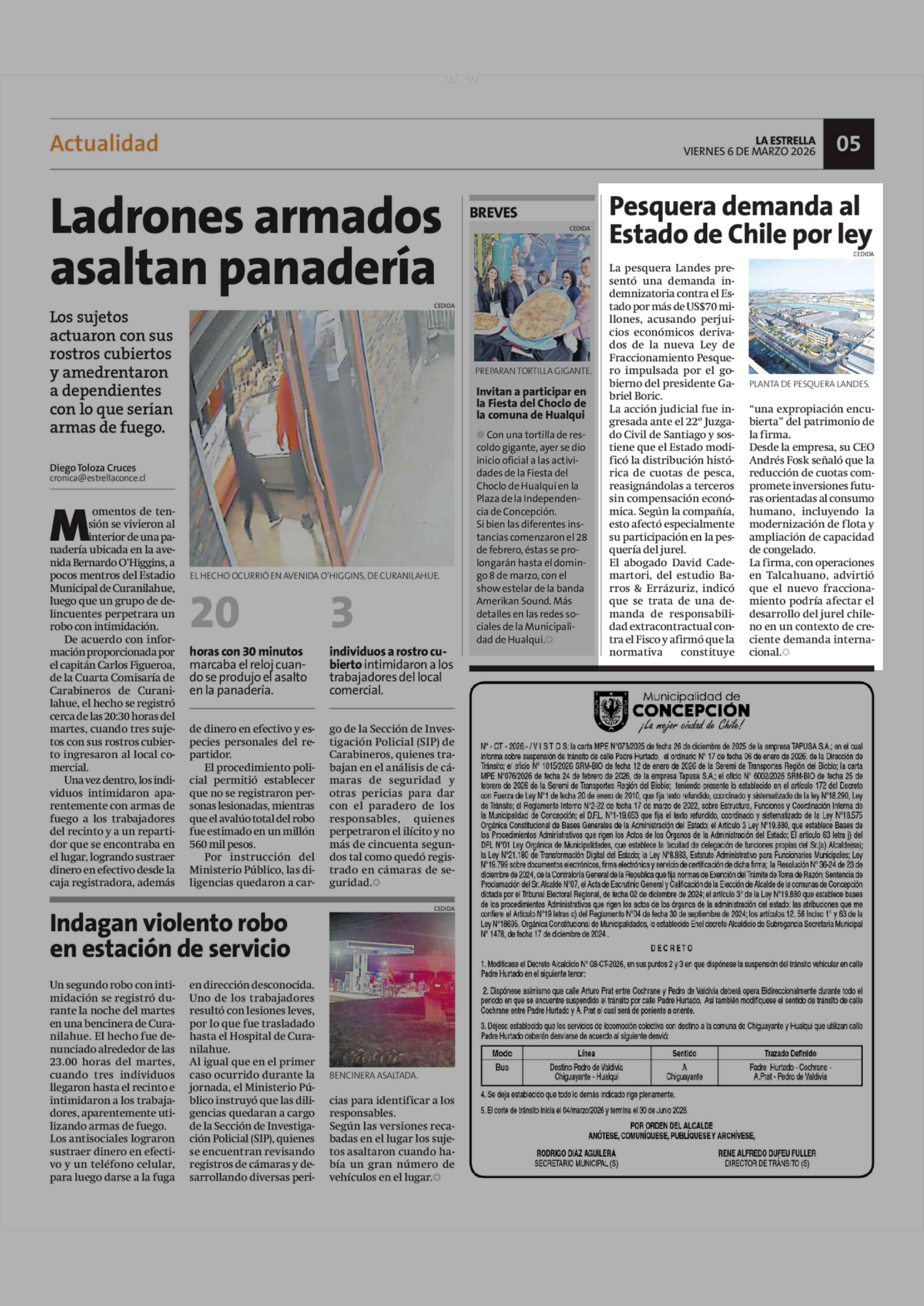 Pesquera demanda al Estado de Chile por ley 06-03-2026 La Estrella de Concepción |