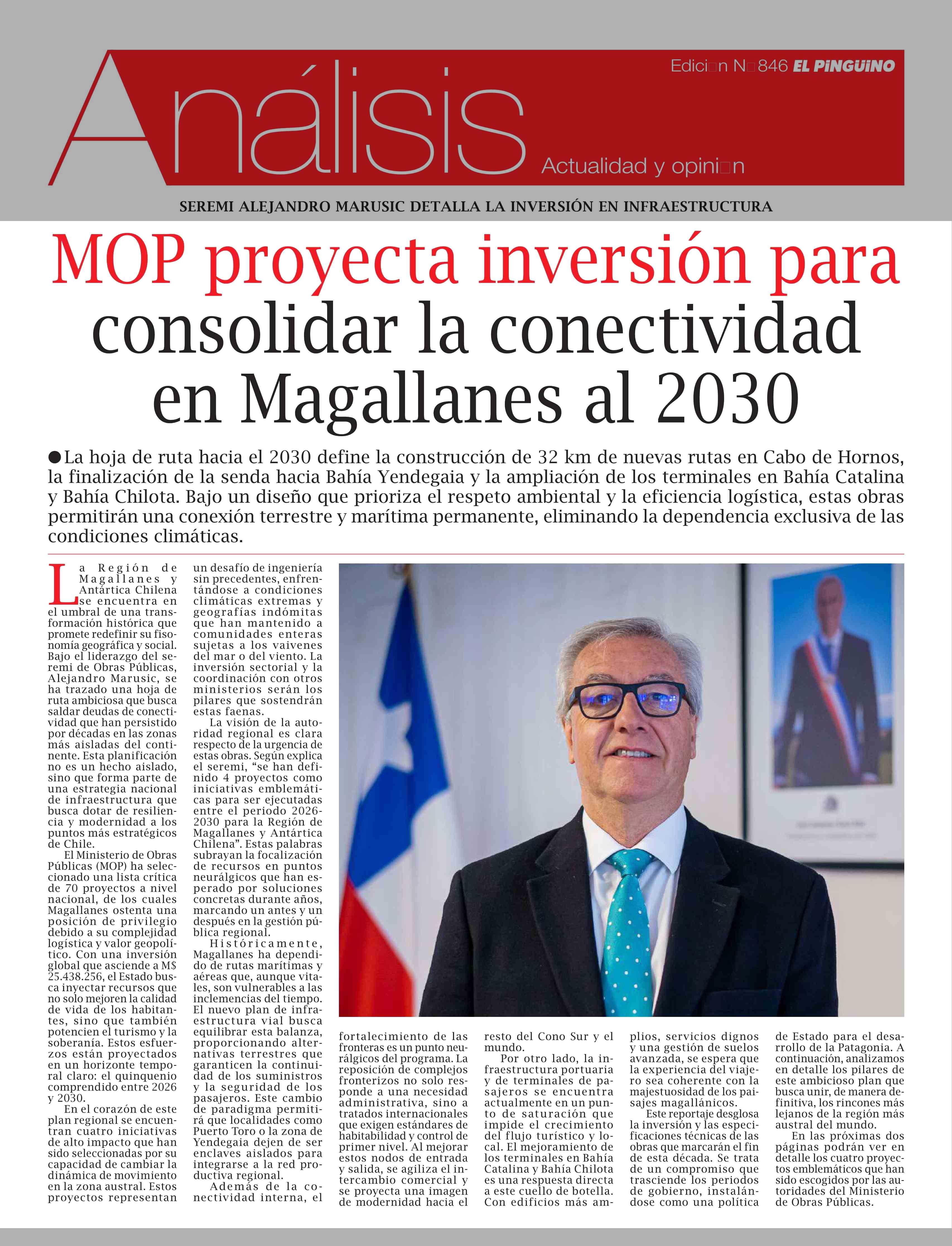 MOP proyecta inversión para consolidar la conectividad en Magallanes al 2030 26-04-2026 El Pingüino |