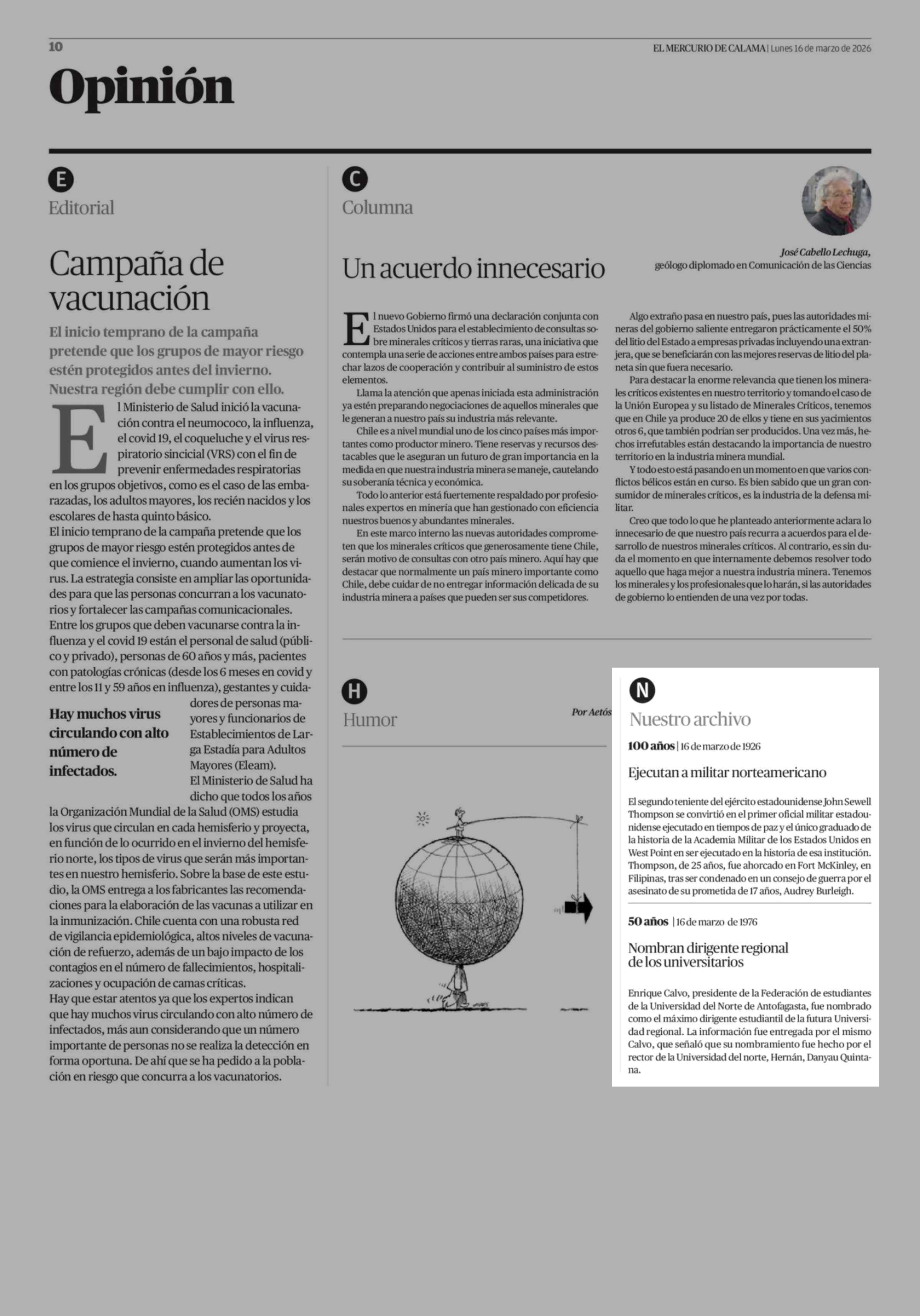 Nuestro archivo 16-03-2026 El Mercurio de Calama |