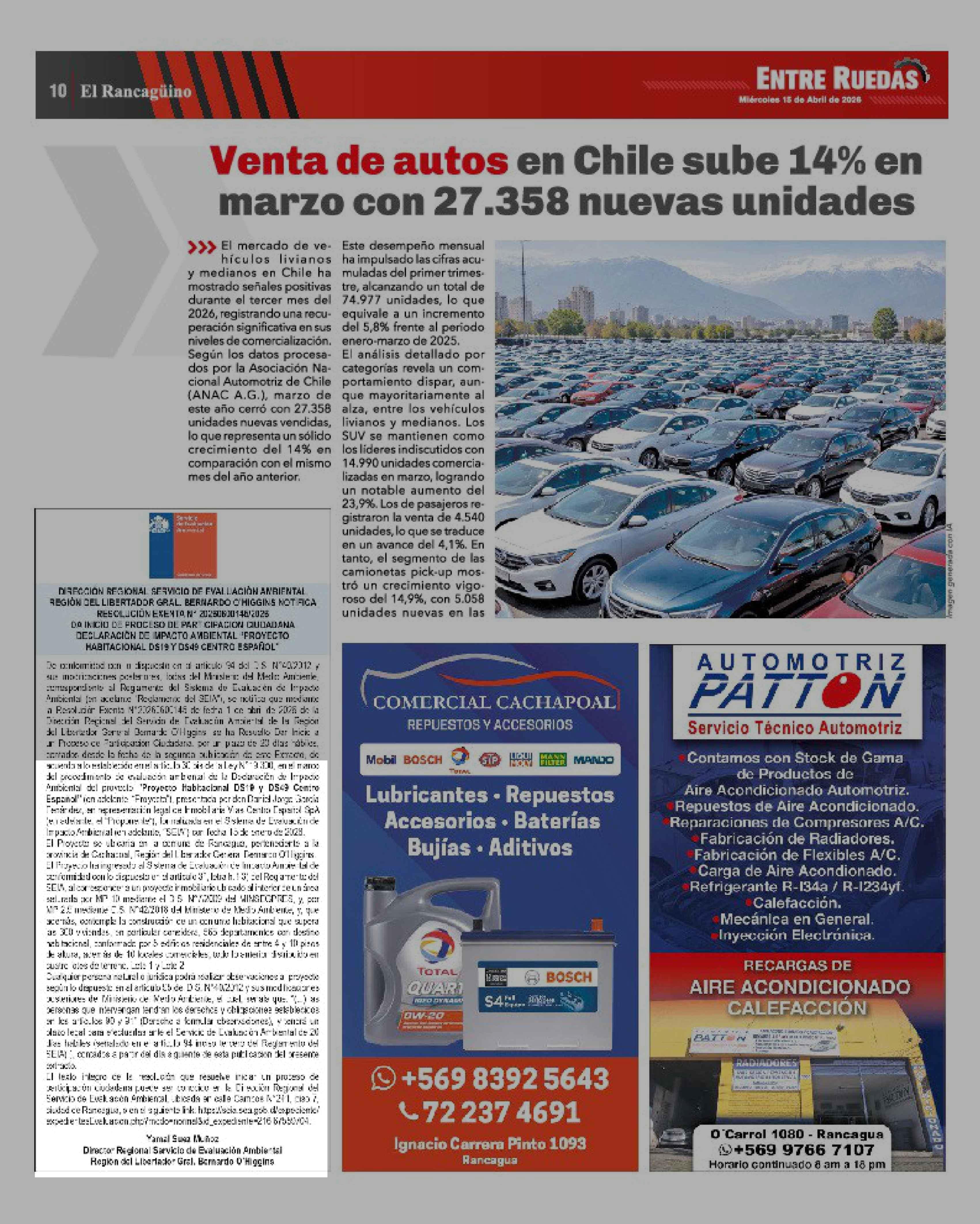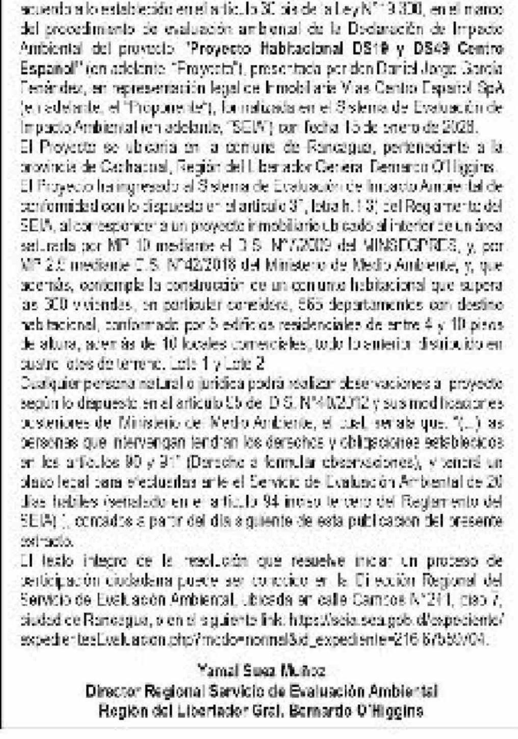 Extractos: DIRECCIÓN REGIONAL SERVICIO DE EVALUACIÓN AMBIENTAL 15-04-2026 El Rancagüino |