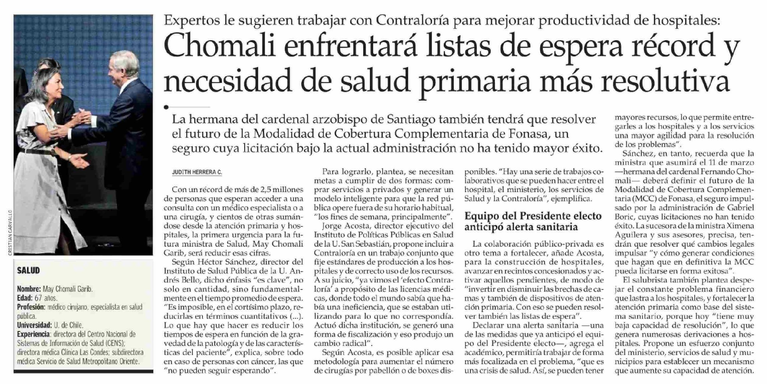 Título: Chomali enfrentará listas de espera récord y necesidad de salud primaria más resolutiva