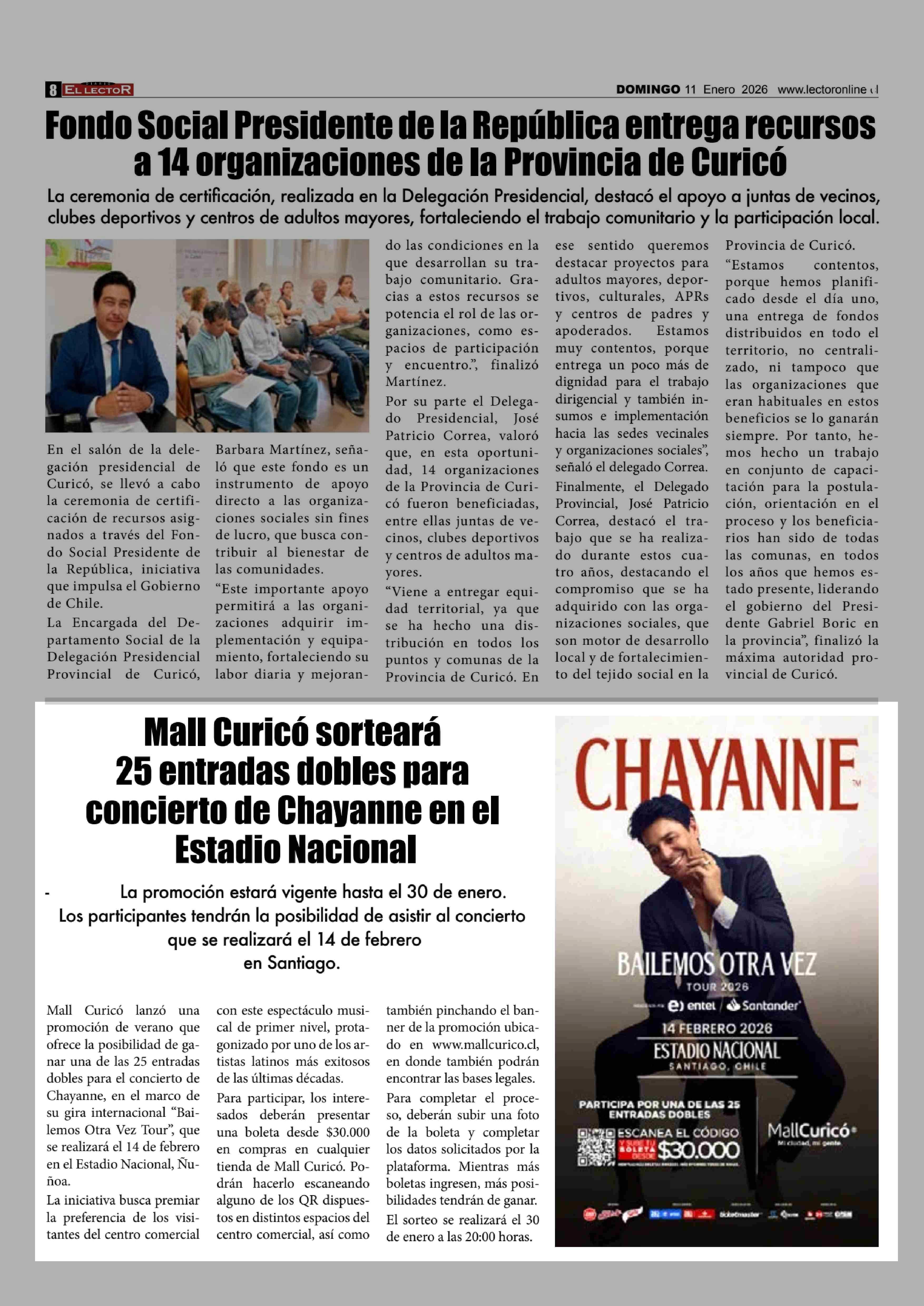 Mall Curicó sorteará 25 entradas dobles para concierto de Chayanne en el Estadio Nacional 11-01-2026 El Lector |