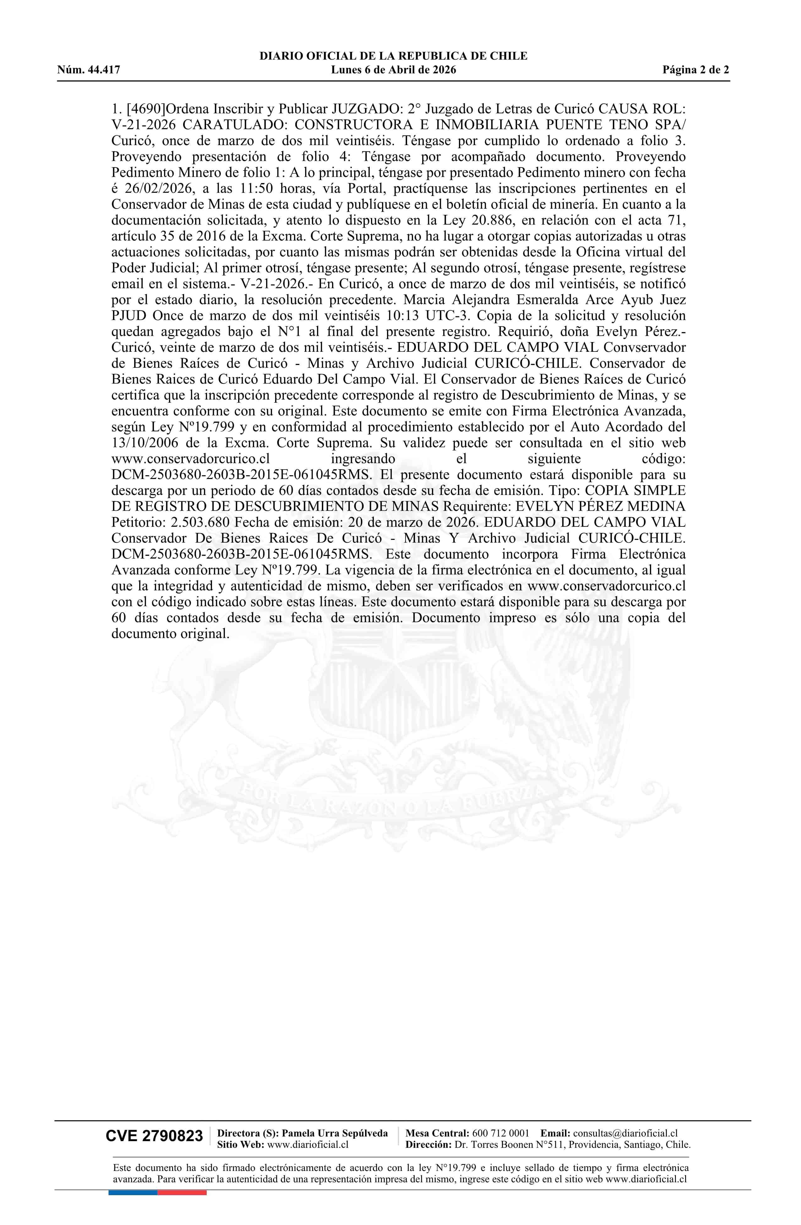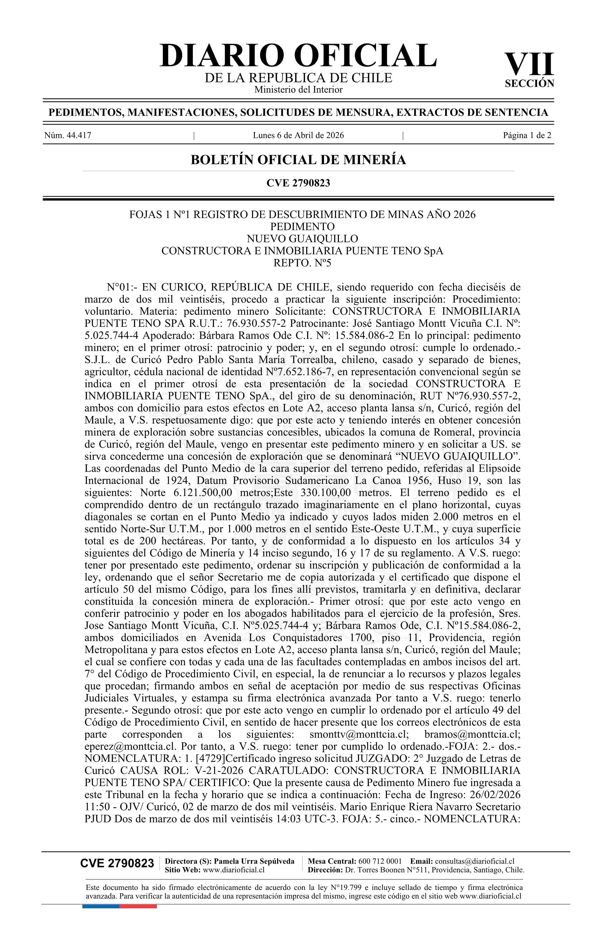 06-04-2026 DIARIO OFICIAL CHILE - BOLETÍN OFICIAL DE MINERÍA