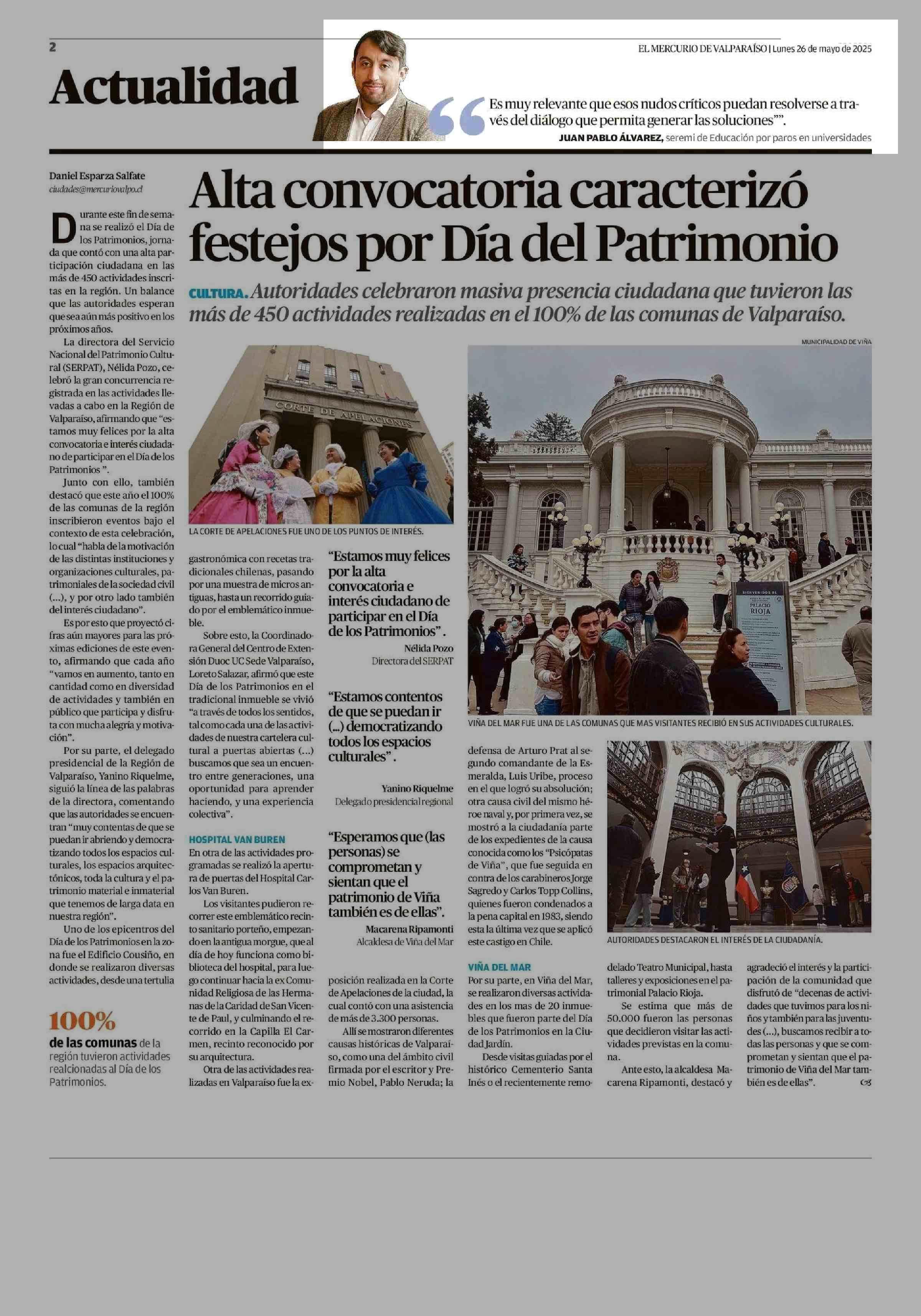 JUAN PABLO ÁLVAREZ, seremi de Educación por paros en universidades 26-05-2025 El Mercurio de Valparaíso |