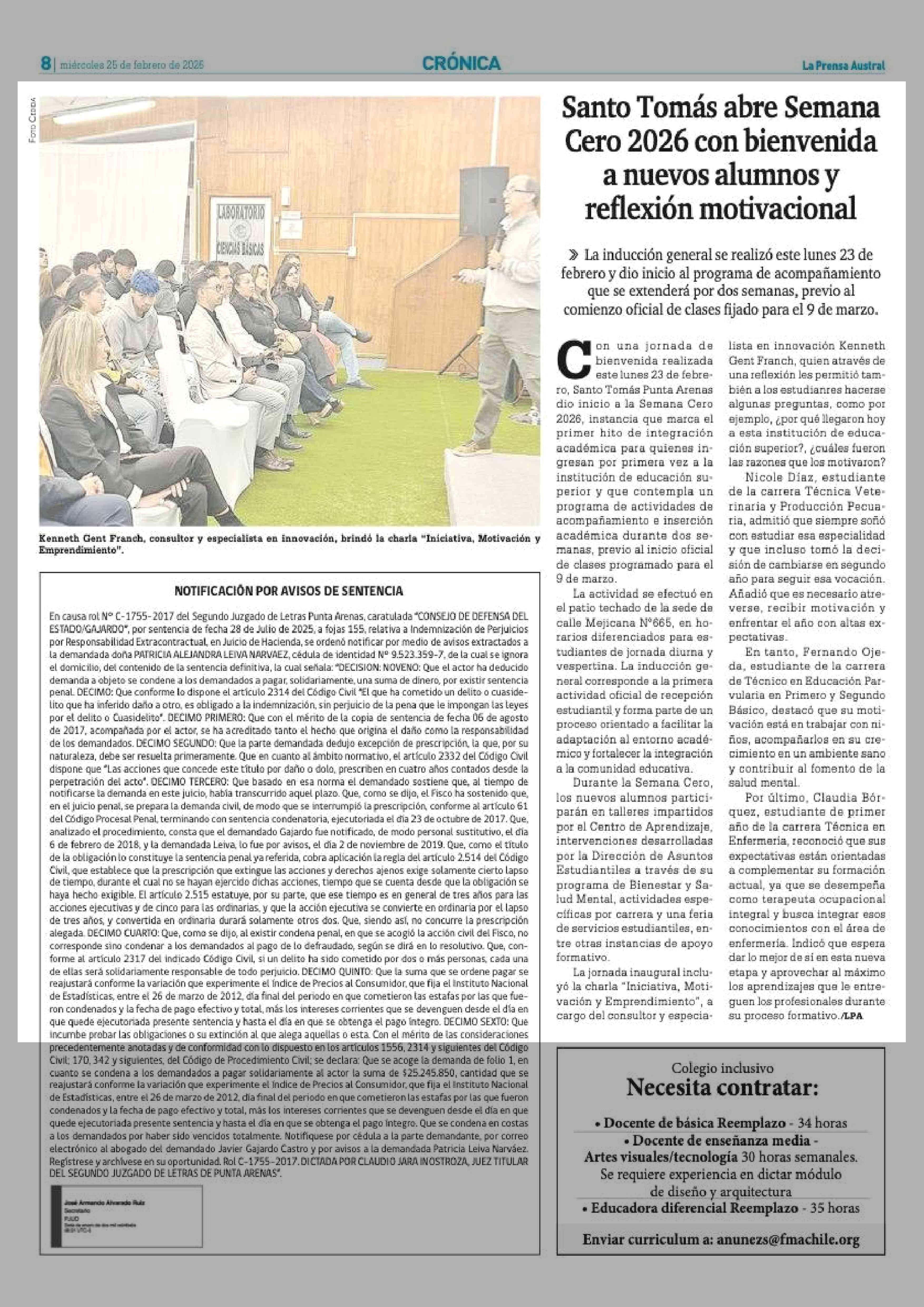 Fuente: La Prensa Austral (La Prensa Austral) Página(s): 8