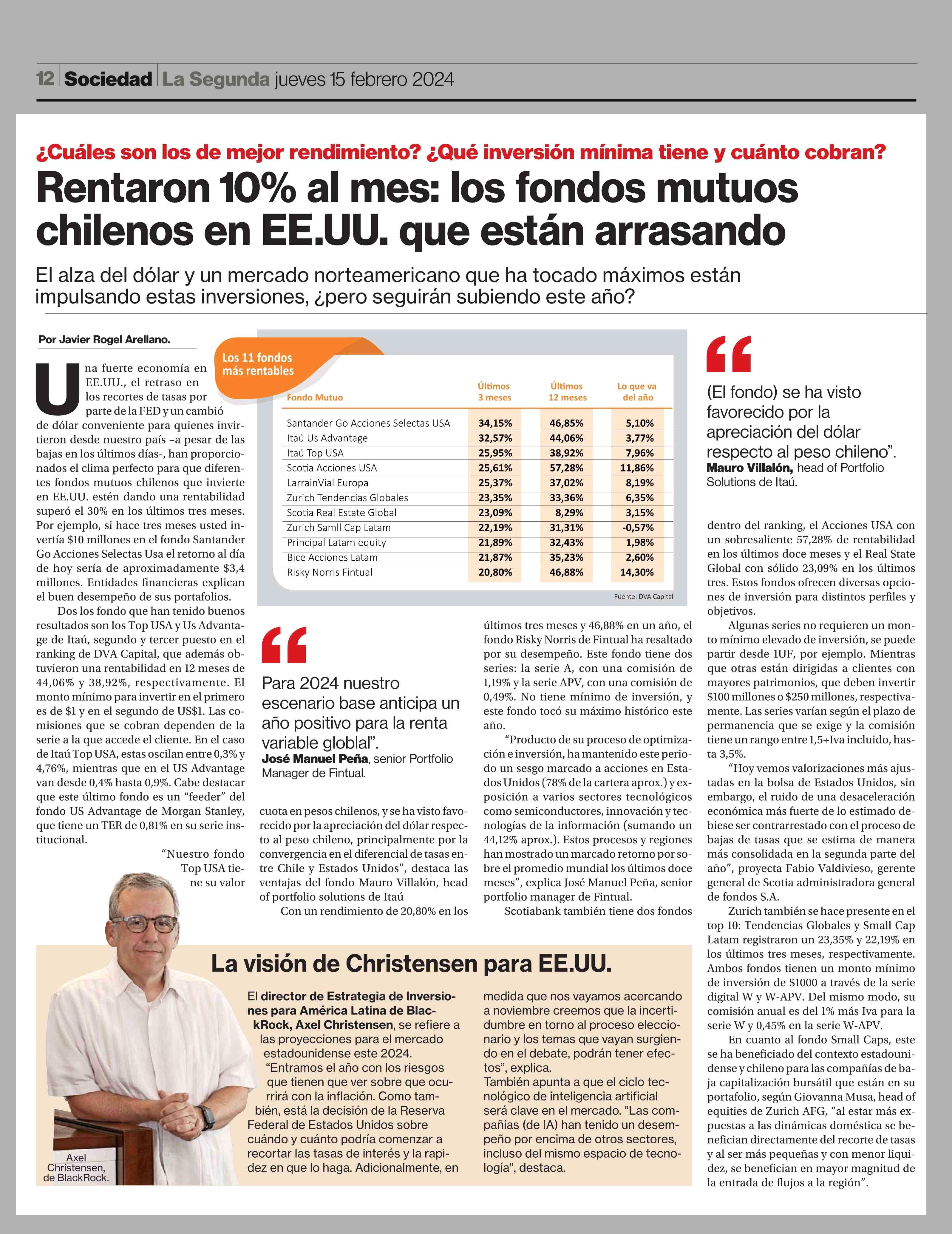 Rentaron 10% al mes: los fondos mutuos chilenos en EE.UU. que están arrasando 15-02-2024 La Segunda |