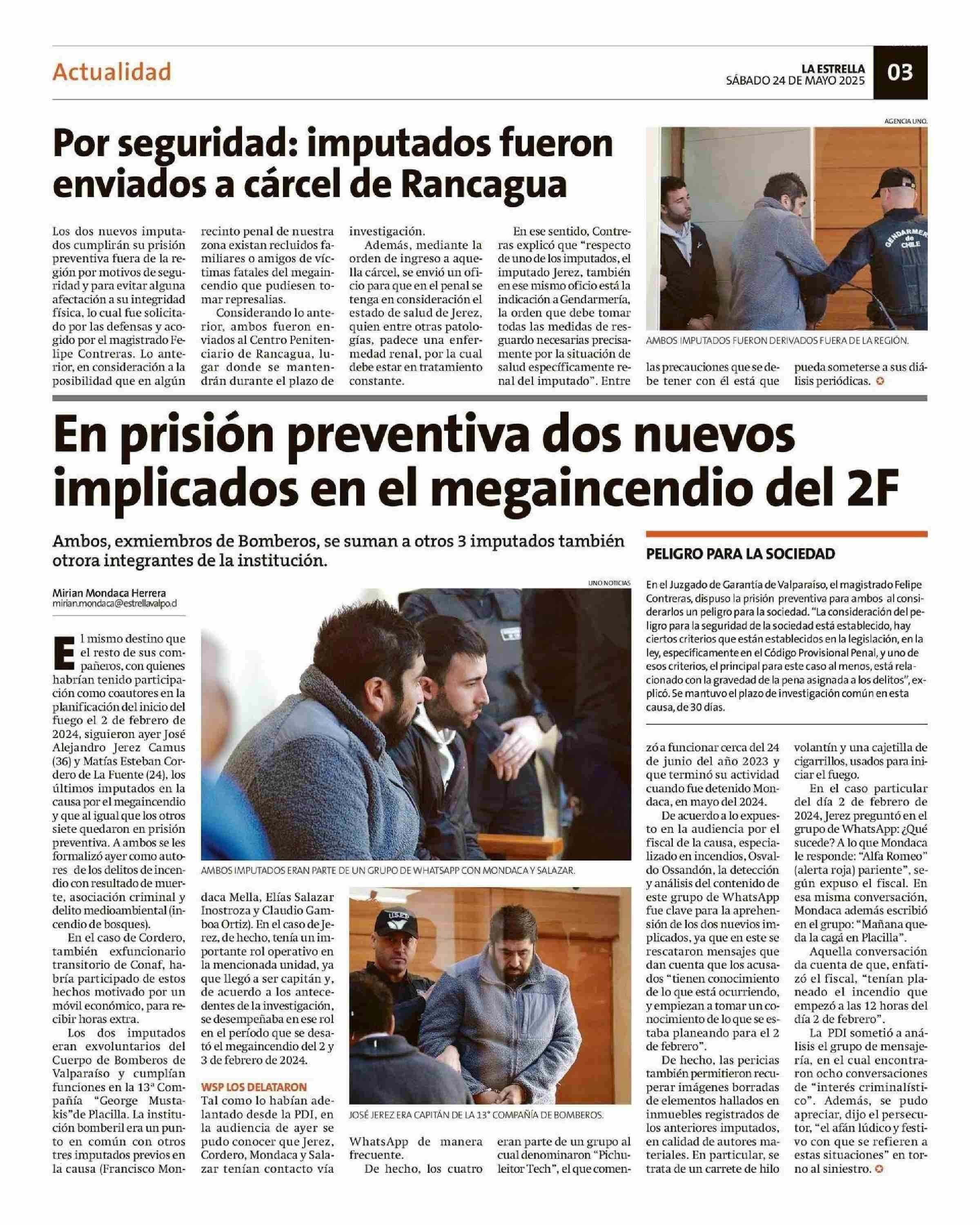 En prisión preventiva dos nuevos implicados en el megaincendio del 2F 24-05-2025 La Estrella de Valparaíso |