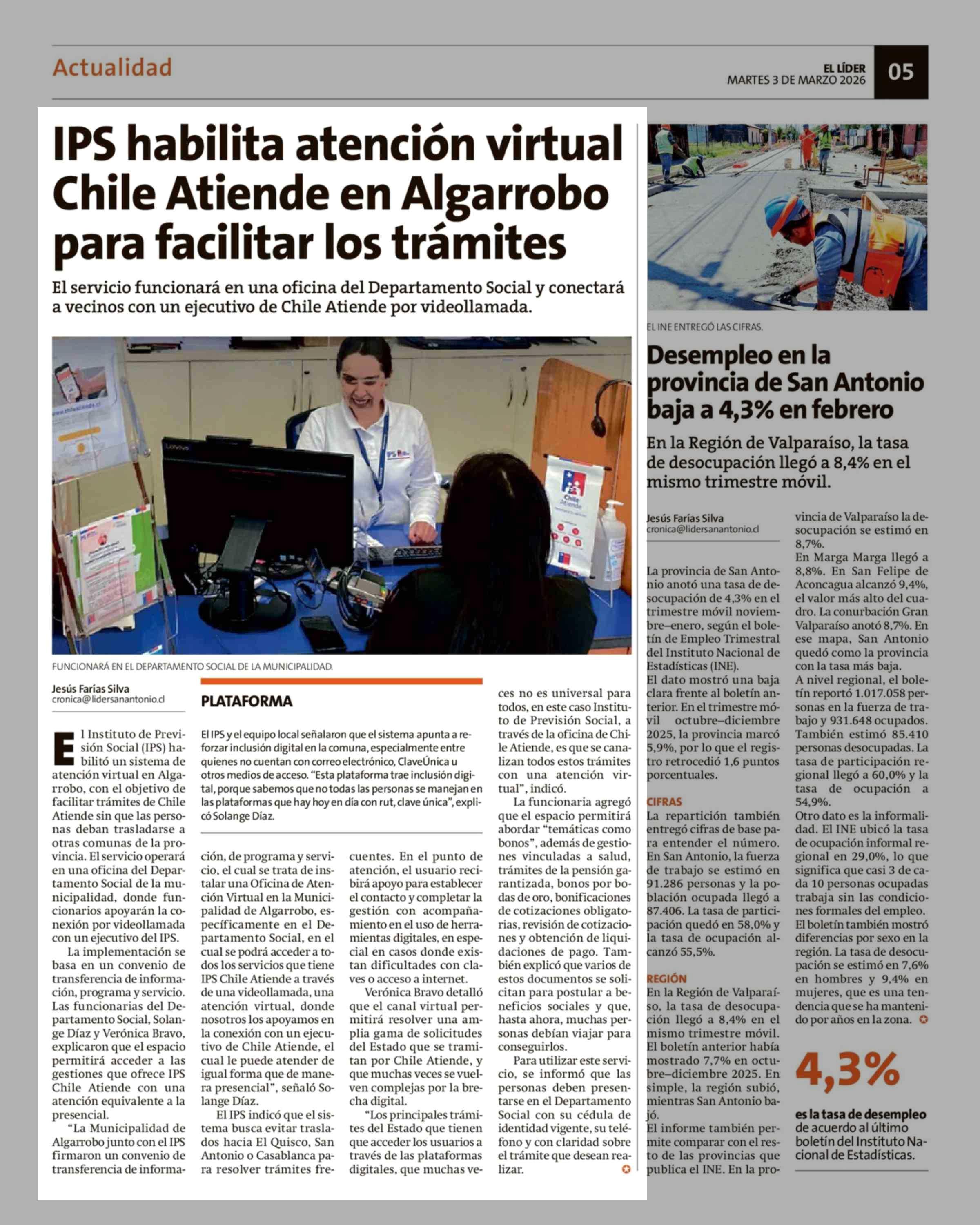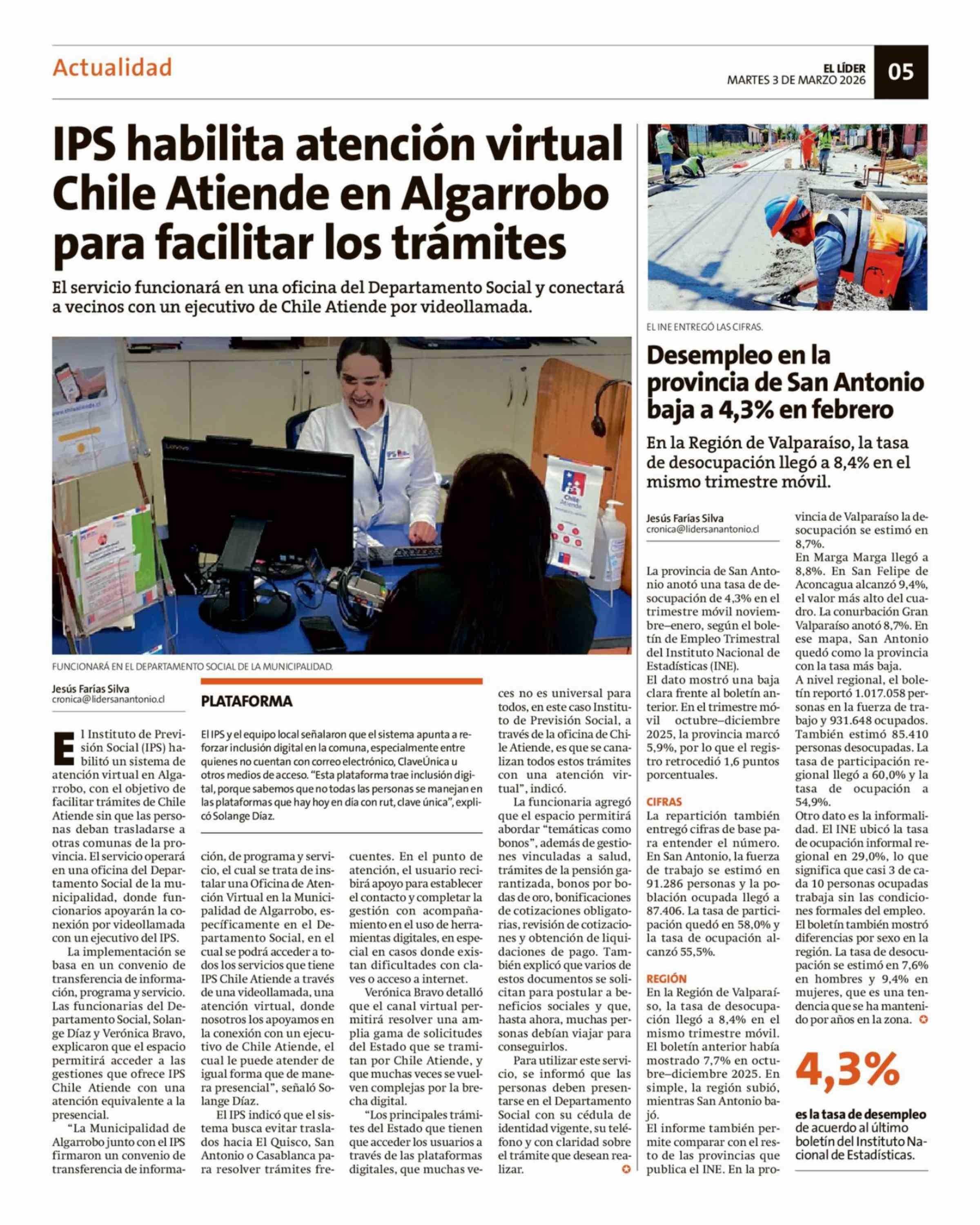 Título: IPS habilita atención virtual Chile Atiende en Algarrobo para facilitar los trámites