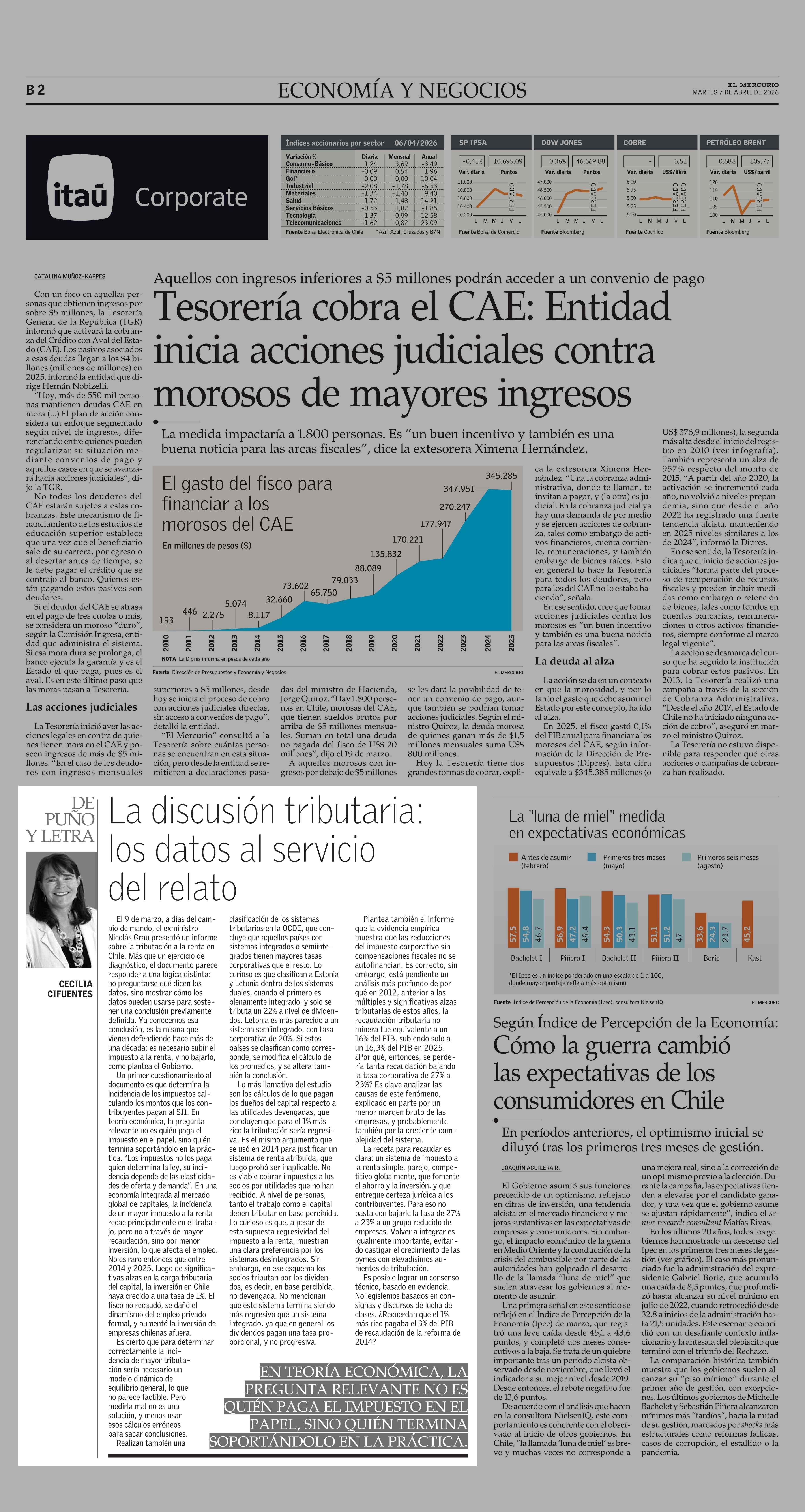 Columnas de Opinión: La discusión tributaria: los datos al servicio del relato 07-04-2026 El Mercurio |