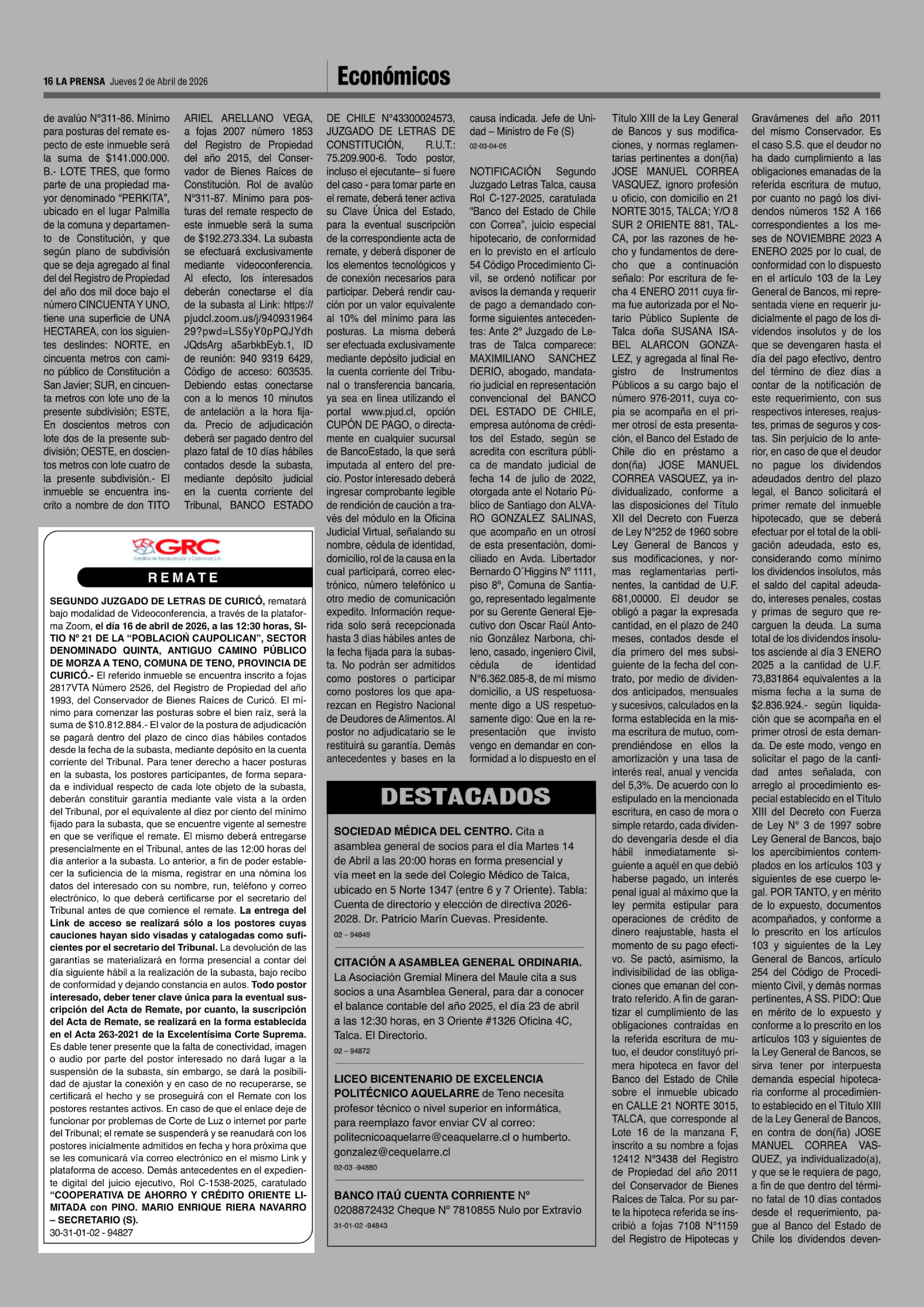 Fecha: 02-04-2026 Sector: Noticia general Región: Región del Maule